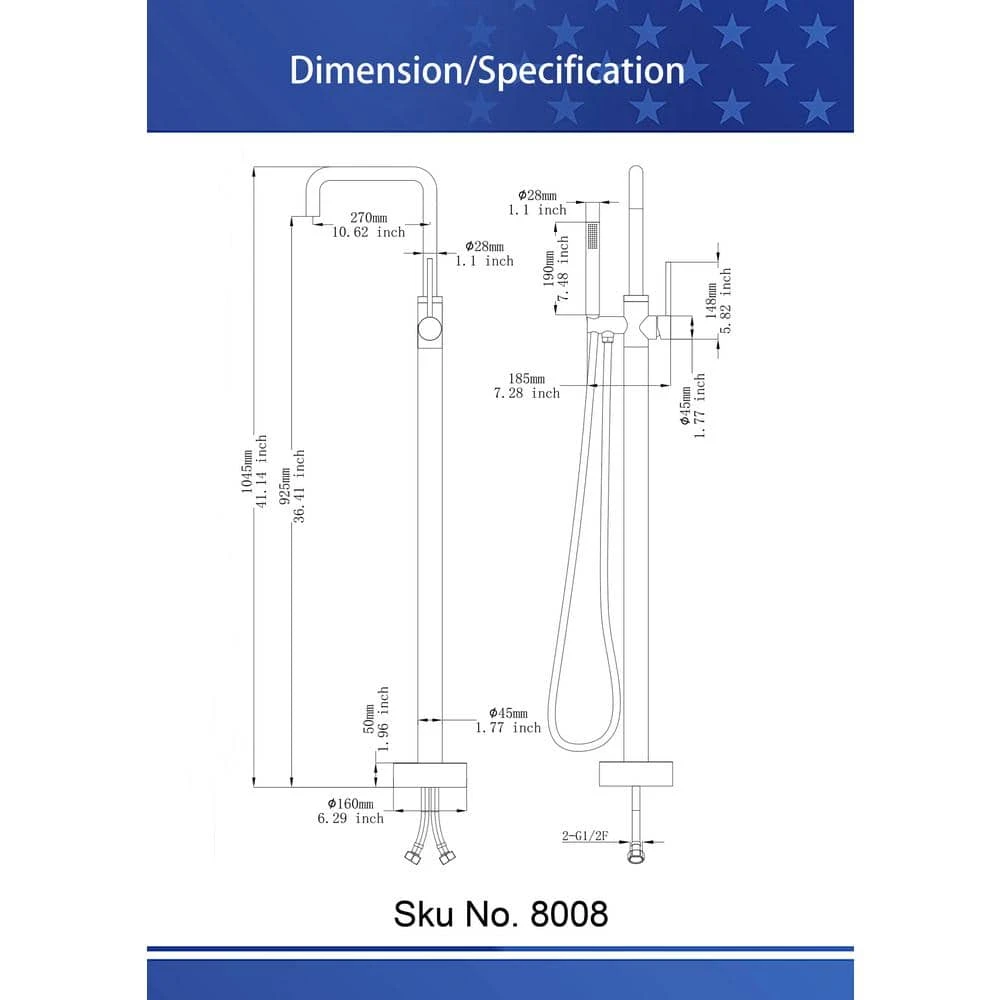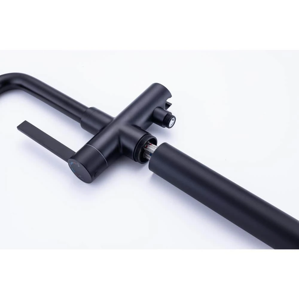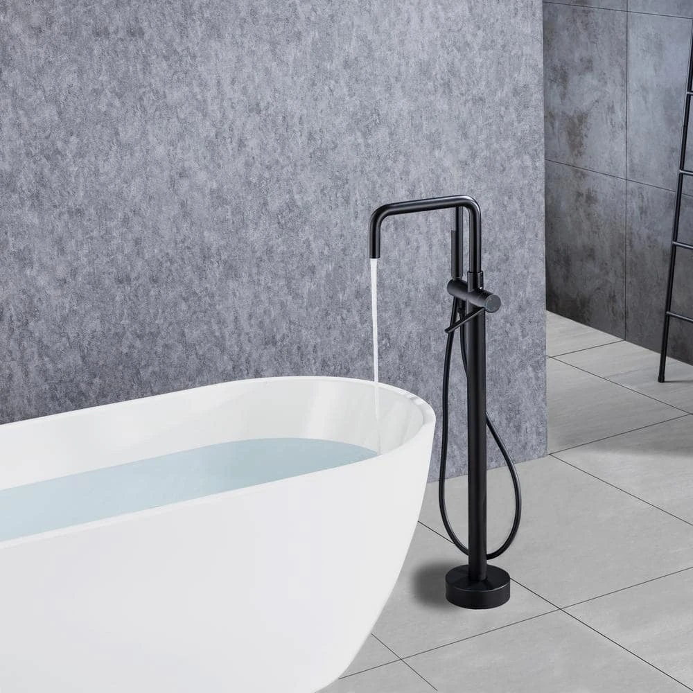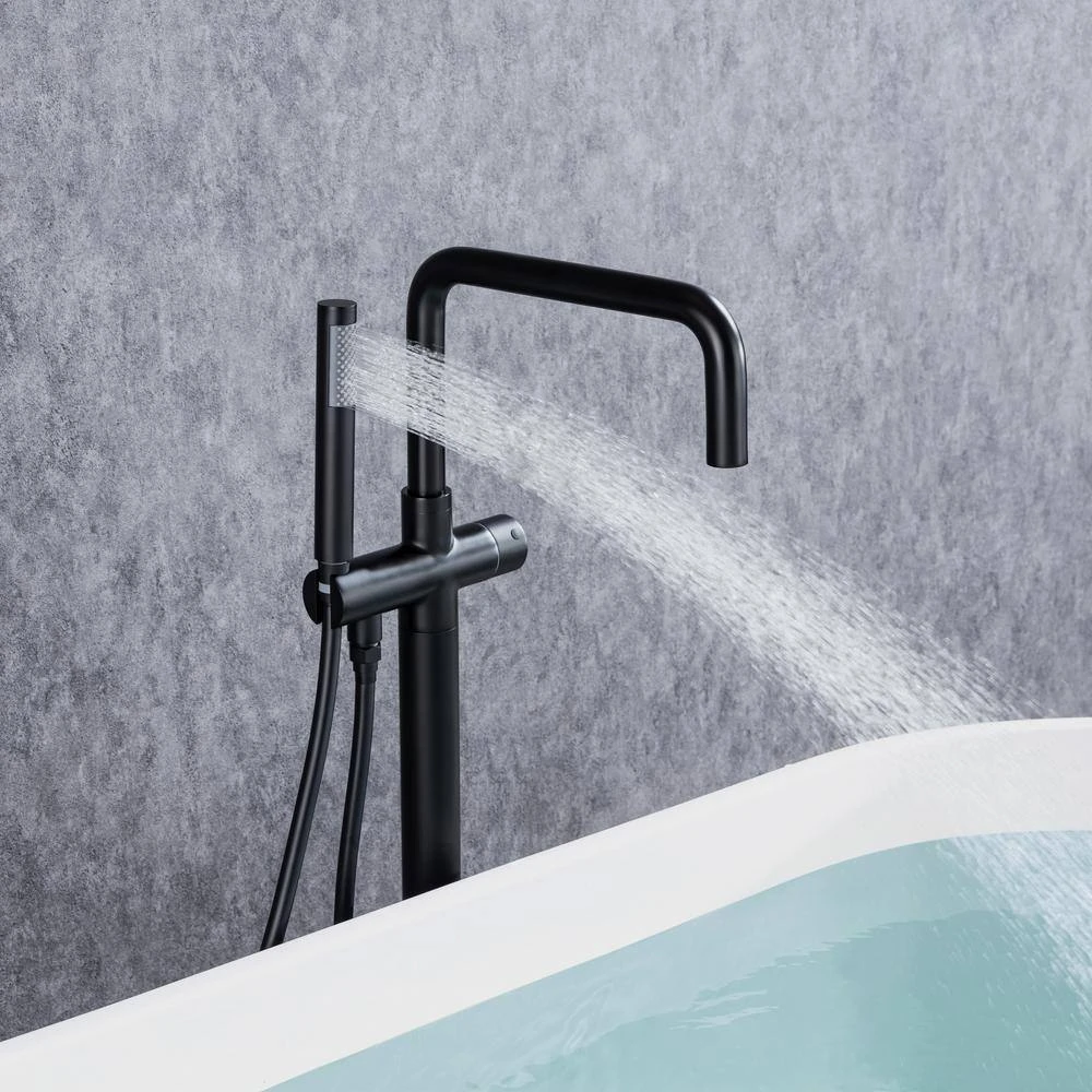 1-Handle Freestanding Tub Faucet With Hand Shower With Waterfall In Matte Black
