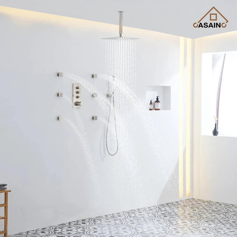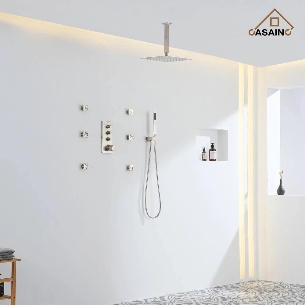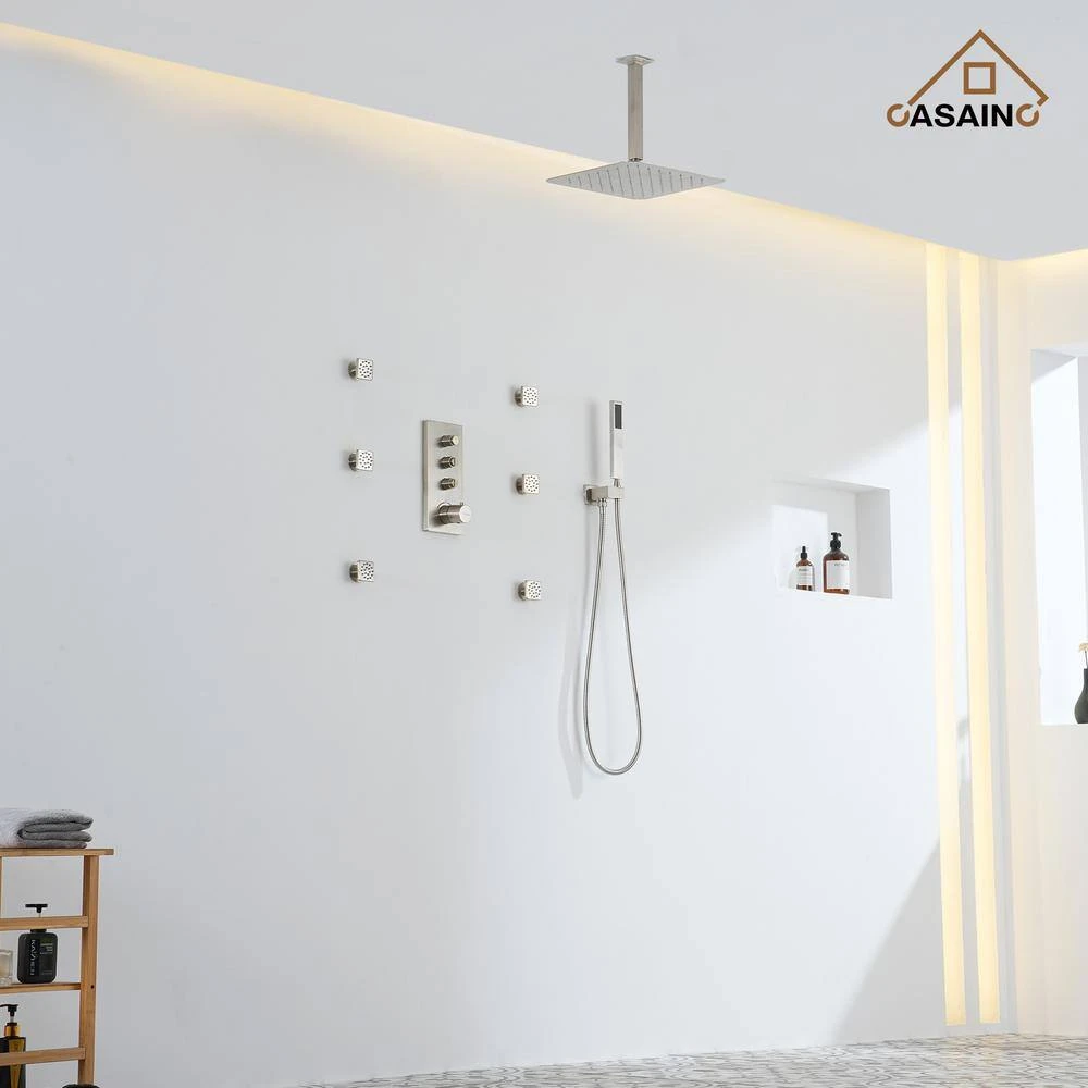1-Spray 1.8 GPM High Pressure Ceiling Mount Dual Shower Head/Handheld Shower Combo In Brushed Nickel