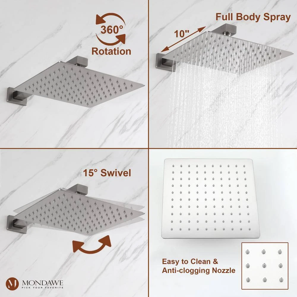 - High quality: faucet body is made from sturdy brass, ensuring high quality and longevity, 10 in. extra large overhead shower is made from 304-stainless steel