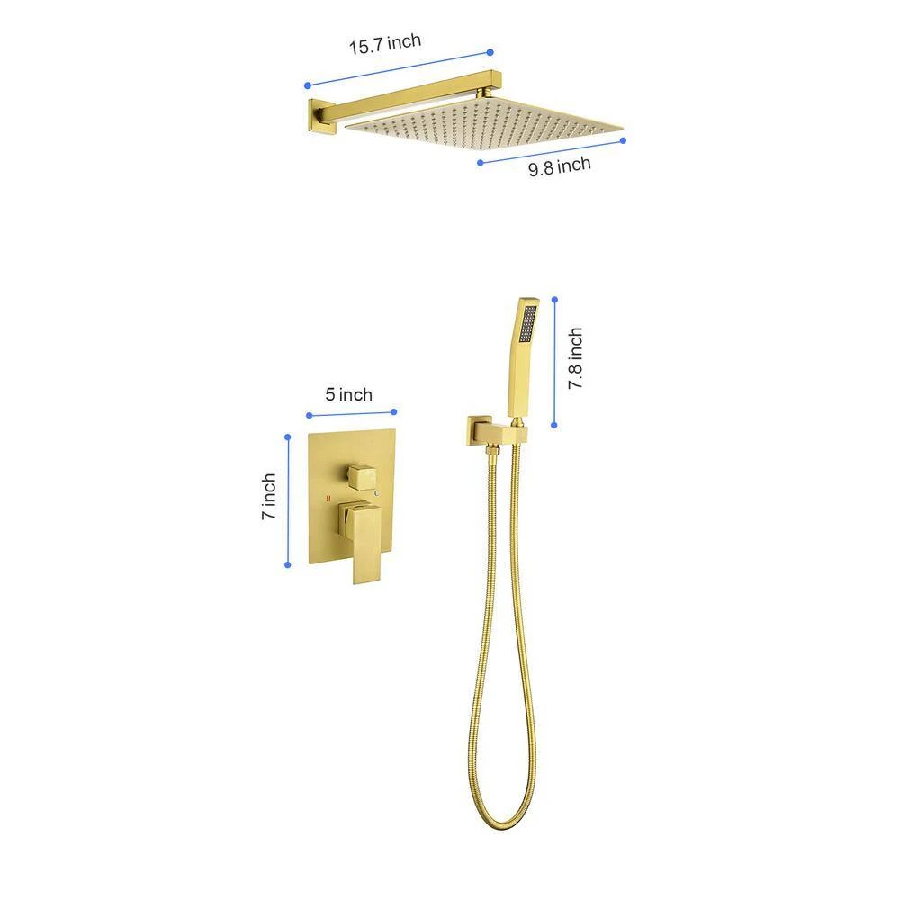 - Complete set includes shower head, hand shower head, 59 in. shower hose, shower bracket, water control valve and mounting hardware