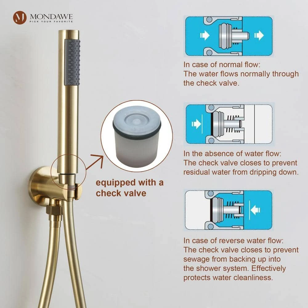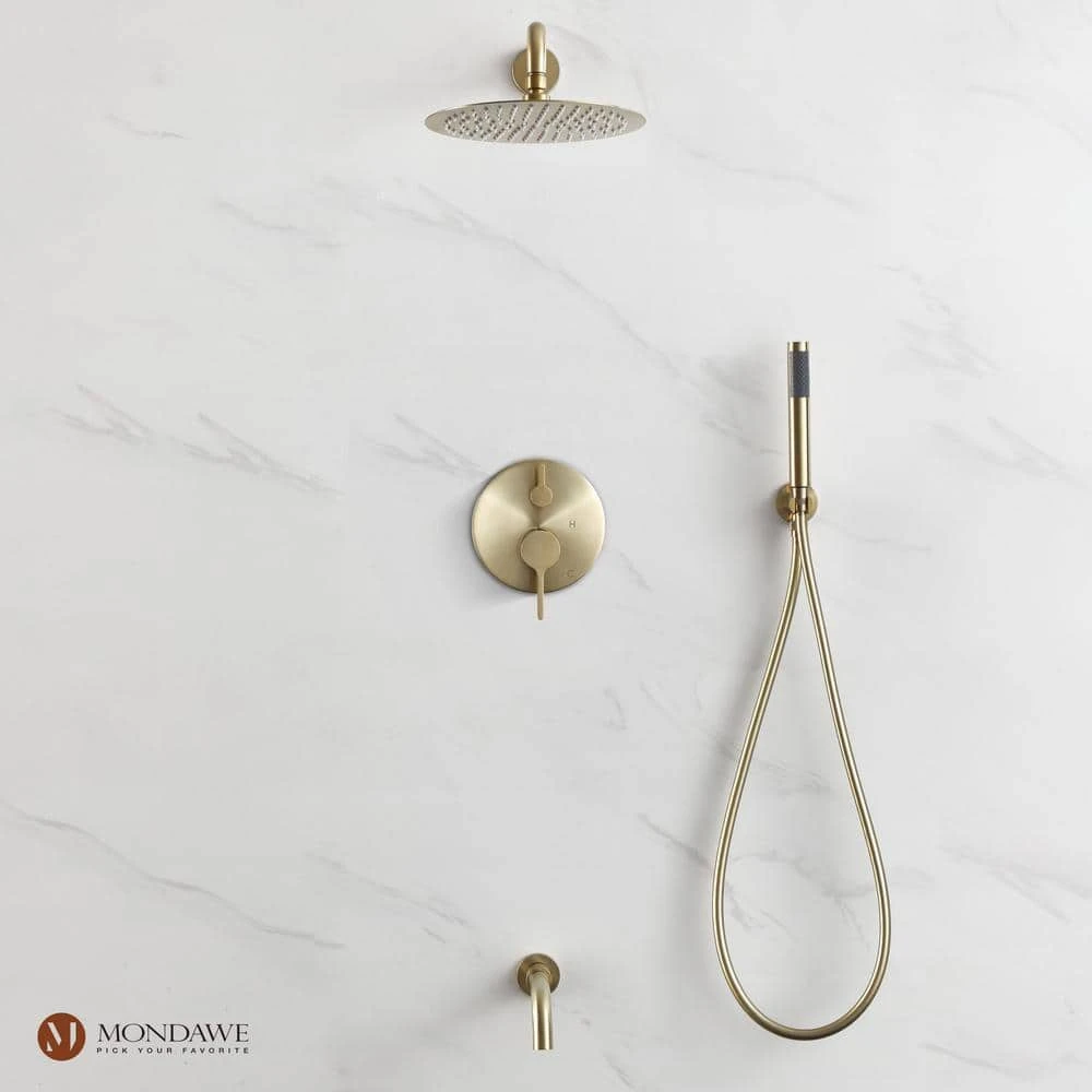 - Pvd brush gold finishes: shower fixtures feature premium plated finishes to resist corrosion, tarnishing, and discoloration for the life of the shower
