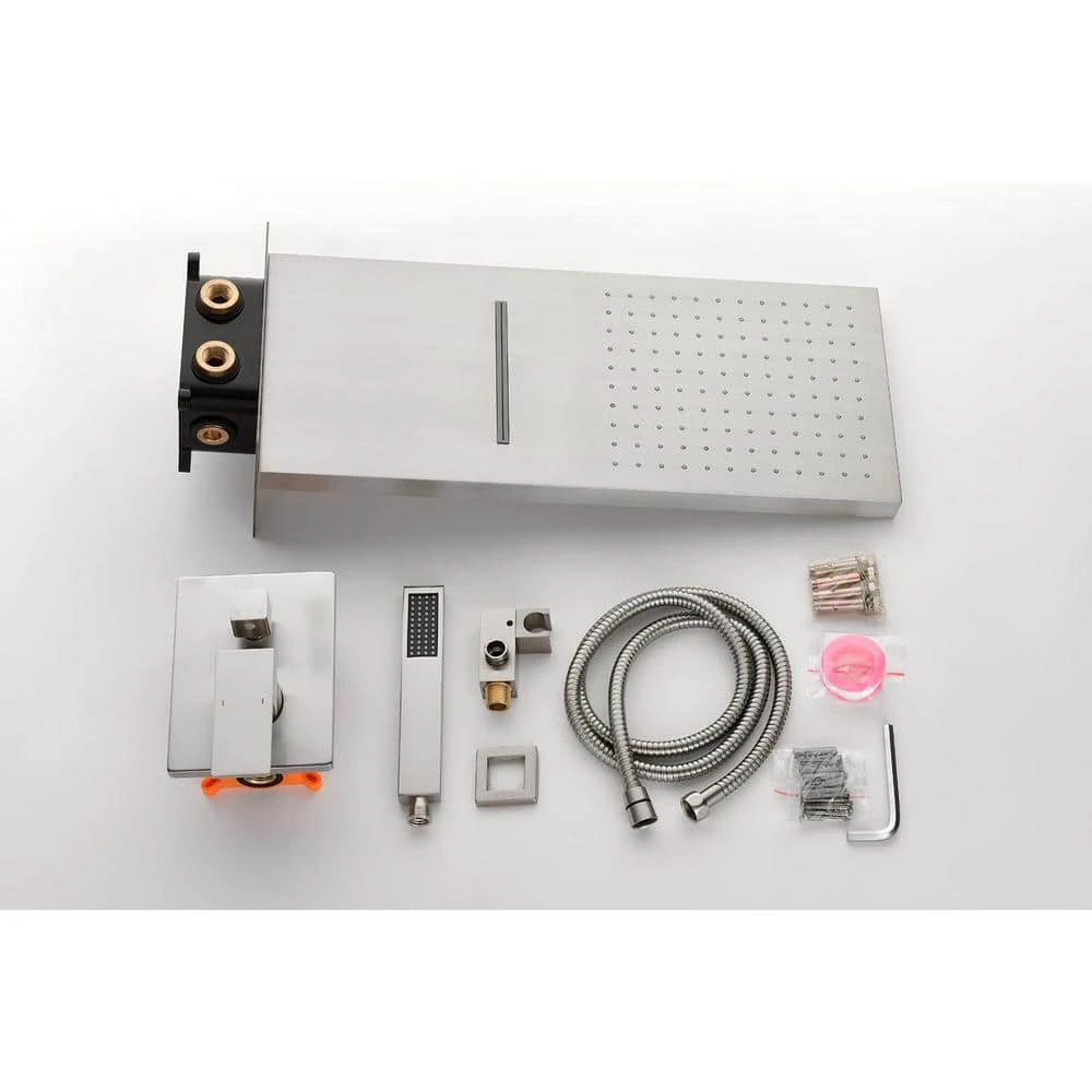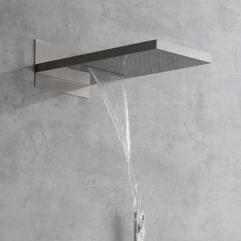 This dual-function waterfall rain shower head offers both rain and waterfall modes, providing a full-body relaxation experience akin to natural rainfall and the gentle flow of a waterfall. Constructed from brass and high-quality stainless steel SUS304, it guarantees durability. With an NPT 1/2 in. connector design conforming to American standard pipe connections, installation is straightforward. The wall-mounted system includes a shower head, hand shower head, 59 in. shower hose, shower bracket, water control valve and mounting hardware, ensuring a comprehensive shower solution. Additionally, the handheld shower head allows for targeted cleansing, catering to diverse bathing needs and enhancing the overall shower experience.