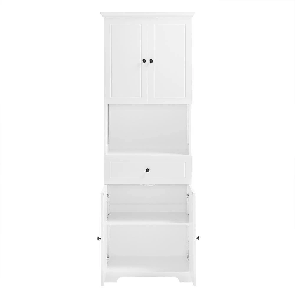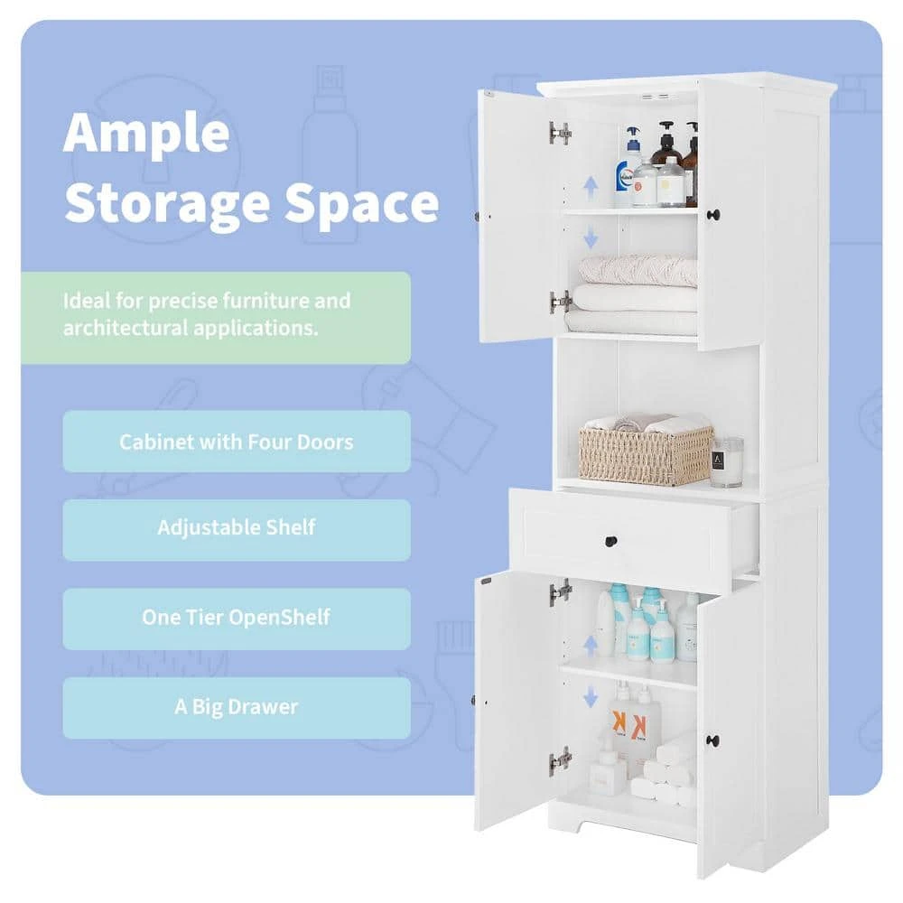 This exceptional storage cabinet is a masterpiece of functionality and aesthetics, constructed from robust high-quality MDF boards that have been meticulously painted to provide a sleek, smooth, and waterproof surface. The surface is not only resilient and durable but also exceptionally easy to clean, ensuring that your storage cabinet remains in pristine condition for years to come.Boasting ample storage options, this cabinet features double cabinets with doors, providing a secure and enclosed space for storing personal items or essentials. Additionally, the open storage space and adjustable shelves offer a flexible and customizable storage solution, allowing you to organize and categorize a wide range of items with ease. Whether you’re looking to keep your office clutter-free or your bathroom tidy, this cabinet’s versatile design makes it an ideal choice for any room in your home.Safety is a top priority with this cabinet, as it comes equipped with an anti-toppling device that can be securely attached to the wall to prevent accidental tipping. This added safety feature ensures that you and your loved ones, including curious children, remain protected from potential harm.