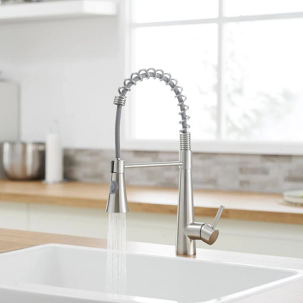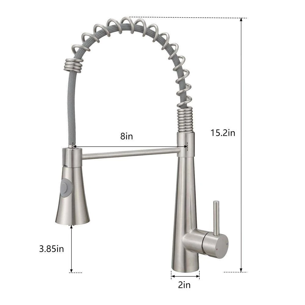 Our Kitchen Faucet with Pull – Out Sprayer is a versatile and user – friendly addition to any kitchen. This Brushed Nickel Kitchen Sink Faucet features a single – handle design, making it easy to control both water temperature and flow volume. With the Single Handle Single Lever Kitchen Faucet, you can effortlessly mix hot and cold water, ensuring stable water pressure for all your kitchen needs.The faucet offers MULTIFUNCTIONAL OUTLET WATER options. You can switch between a stream setting for filling water containers and a spray setting for efficient rinsing, which makes cleanup a breeze. The high – arc 360° swivel design of this Commercial Brushed Kitchen Faucet with Pull – Out Sprayer allows for easy access to all areas of the sink.Installation is a straightforward process. It supports 1 or 3 – hole installation (with an extra – purchase deck plate if needed), and all the necessary mounting hardware is included. This Spring Pull – out Kitchen Sink Faucet enables easy DIY installation in less than 25 minutes. There’s no need to hire a plumber, saving you both money and time.