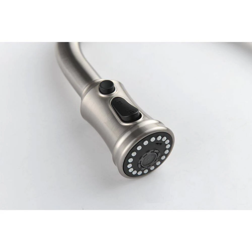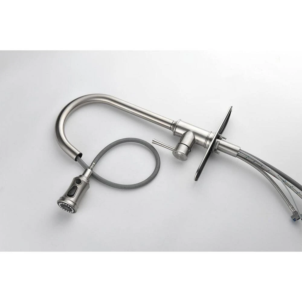Our kitchen faucet with a pull – down sprayer offers an array of remarkable features. The pull – out spray head is ingeniously designed to be compatible with a diverse range of sinks, while its high – arc nozzle, capable of rotating a full 360°, significantly enhances the convenience of water use. With 3-distinct water output settings – stream, spray, and blade – it effectively caters to various tasks, from washing dishes and filling containers to rinsing fruits and vegetables. The faucet features a high – quality anti – corrosion and anti – rust surface treatment. This not only prevents dirt from adhering to its surface but also simplifies daily maintenance; a simple wipe with a rag is all that’s needed to keep it looking new. Moreover, the single – handle design allows for easy and precise control of both water temperature and flow rate. As described, its simple and stylish design enables it to blend seamlessly with most sinks. Whether you’re dealing with a busy kitchen day or a quick cleanup, this faucet’s functionality and aesthetic appeal make it an ideal addition to any kitchen setup.