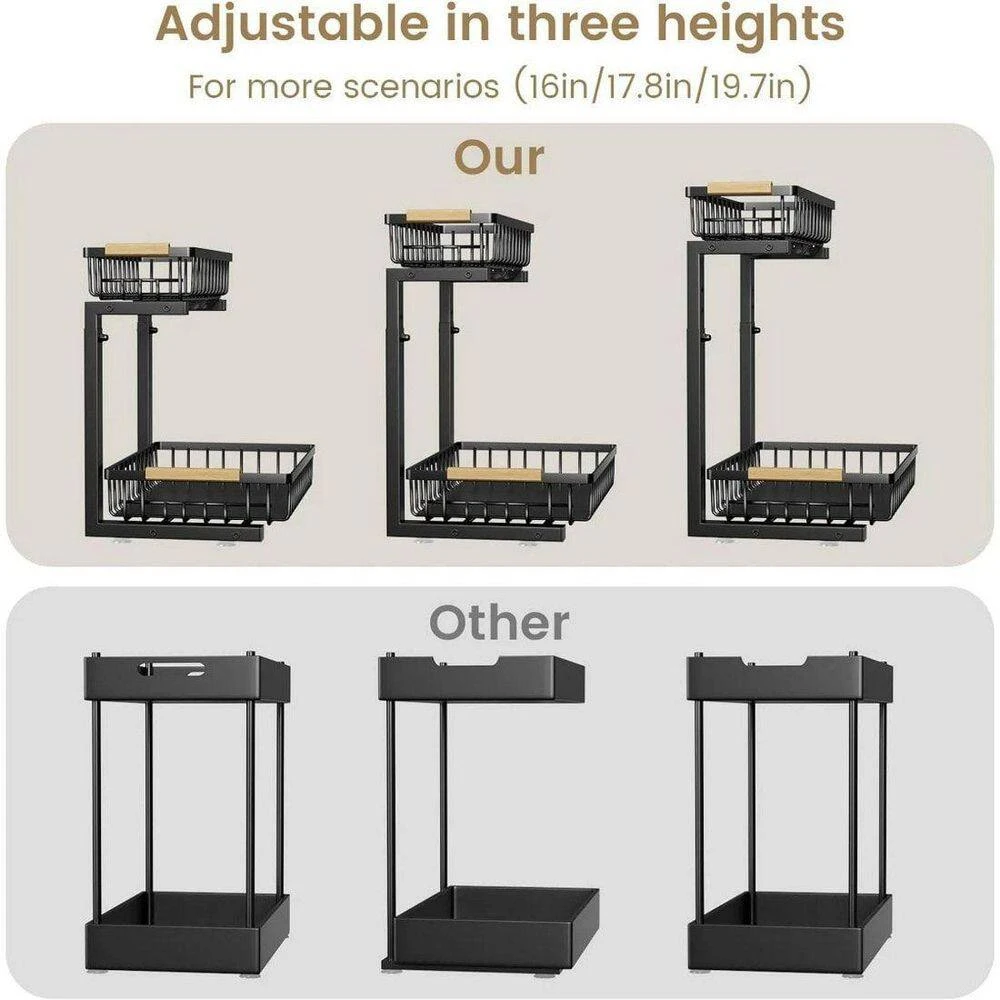 - Adjustable under sink shelf 3-level height adjustment (13.7 in. -16.9 in.) fits various cabinet sizes