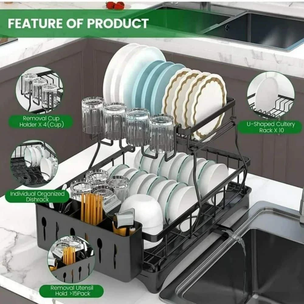 Say goodbye to a cluttered countertop! This removable double-layer drain rack will completely transform your kitchen. It has a large capacity that can easily store all kinds of dishes, cups, and even more tableware, and with easy installation without tools, you can quickly have a neat and organized space. Made of high-quality rust-proof metal, it is sturdy and durable, and is the perfect solution for efficient use of small kitchens!