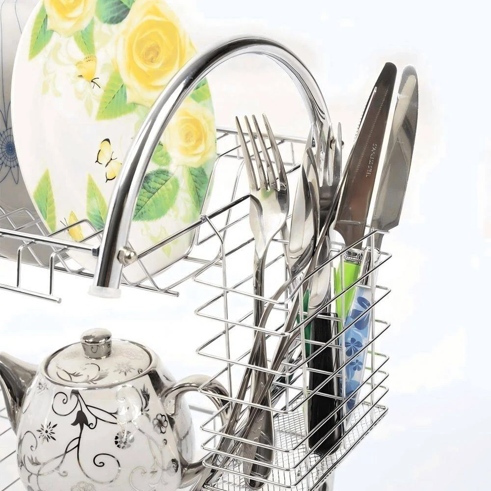 Are you still worried about the pile of dishes. This Better Chef 16 in. double-layer chrome dish rack will completely change your kitchen. Not only can it easily accommodate up to 18 dishes, but it also comes with a side-mounted cup rack and cutlery tube to make your countertops tidy in an instant. The chrome metal structure is beautiful and durable, and it comes with scratch-resistant feet and a drain tray to ensure that your kitchen is both efficient and beautiful.