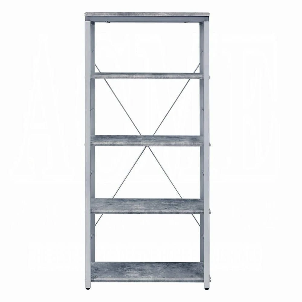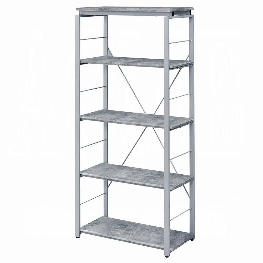 24 in. W X 11 in. D X 54 in. H stylish desk and bookshelf, with a top made of selected finishes and panels, and a solid metal frame, instantly renews your loft or apartment. 3 exquisite finishes, imitation cement, oak, and antique ash, are available to suit a variety of home decoration styles. It only contains a single bookcase and is easy to assemble. It is a good space upgrade that takes into account both appearance and practicality.