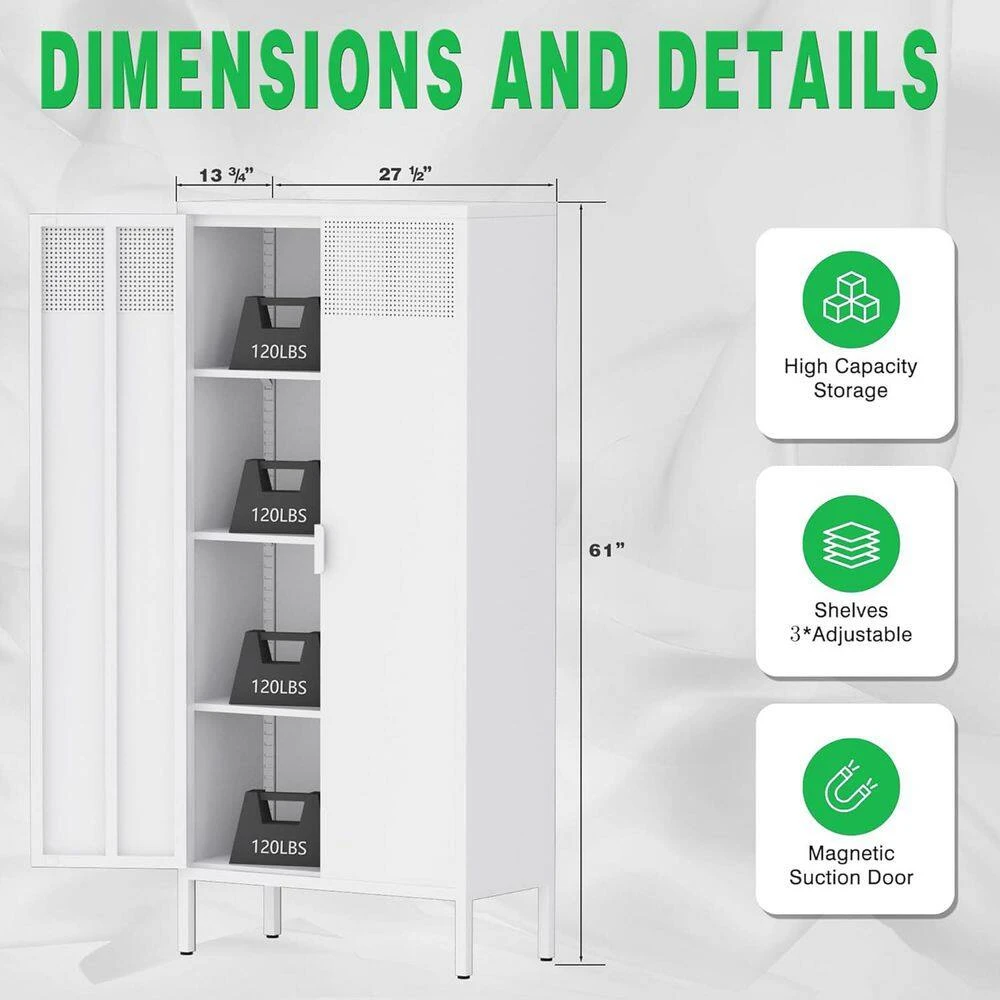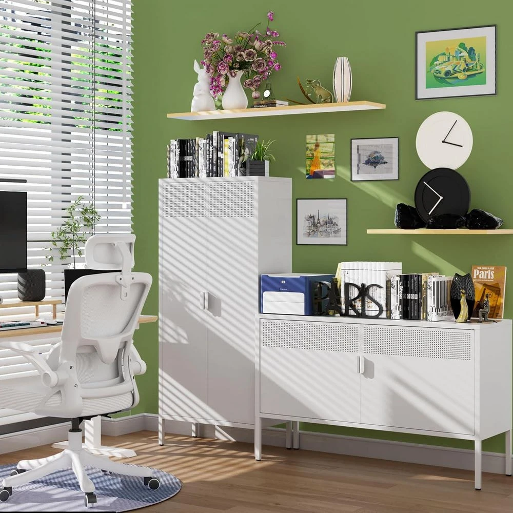 This metal storage cabinet injects a modern atmosphere into the space with a ventilation door design, combining beauty with breathable visibility; the adjustable shelves are suitable for various storage needs, and the internal layout can be flexibly customized with non-slip leveling feet and magnetic door buckles, which are stable and safe. It is suitable for multiple scenes from office to home, and is an all-round choice for improving storage quality.
