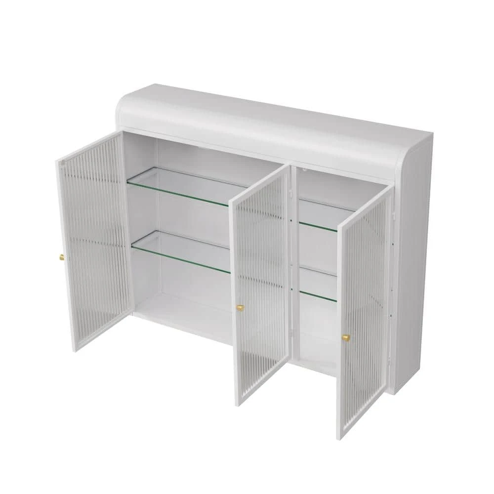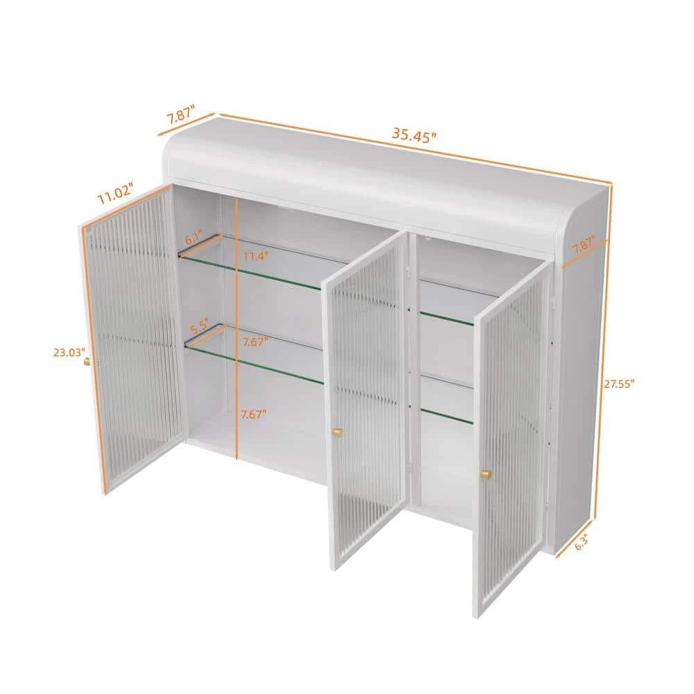 Our wall-mounted cabinet, characterized by its elegant wide-top, narrow-bottom design, enhances home decor with a sleek, modern aesthetic that complements any space. Crafted from high-quality materials, it offers versatile storage with 3-spacious doors, supporting up to 60 lbs. while maintaining stylish display. Designed for easy installation with included hardware and a user-friendly guide, this functional and stylish cabinet not only organizes essentials but also showcases beautiful possessions through glass doors, creating an attractive focal point. Please note slight errors may occur due to manual measurement.