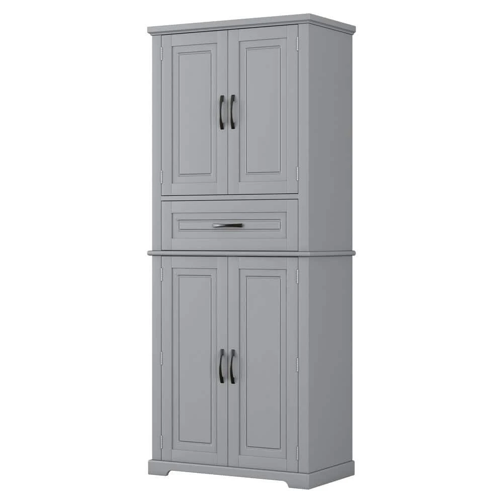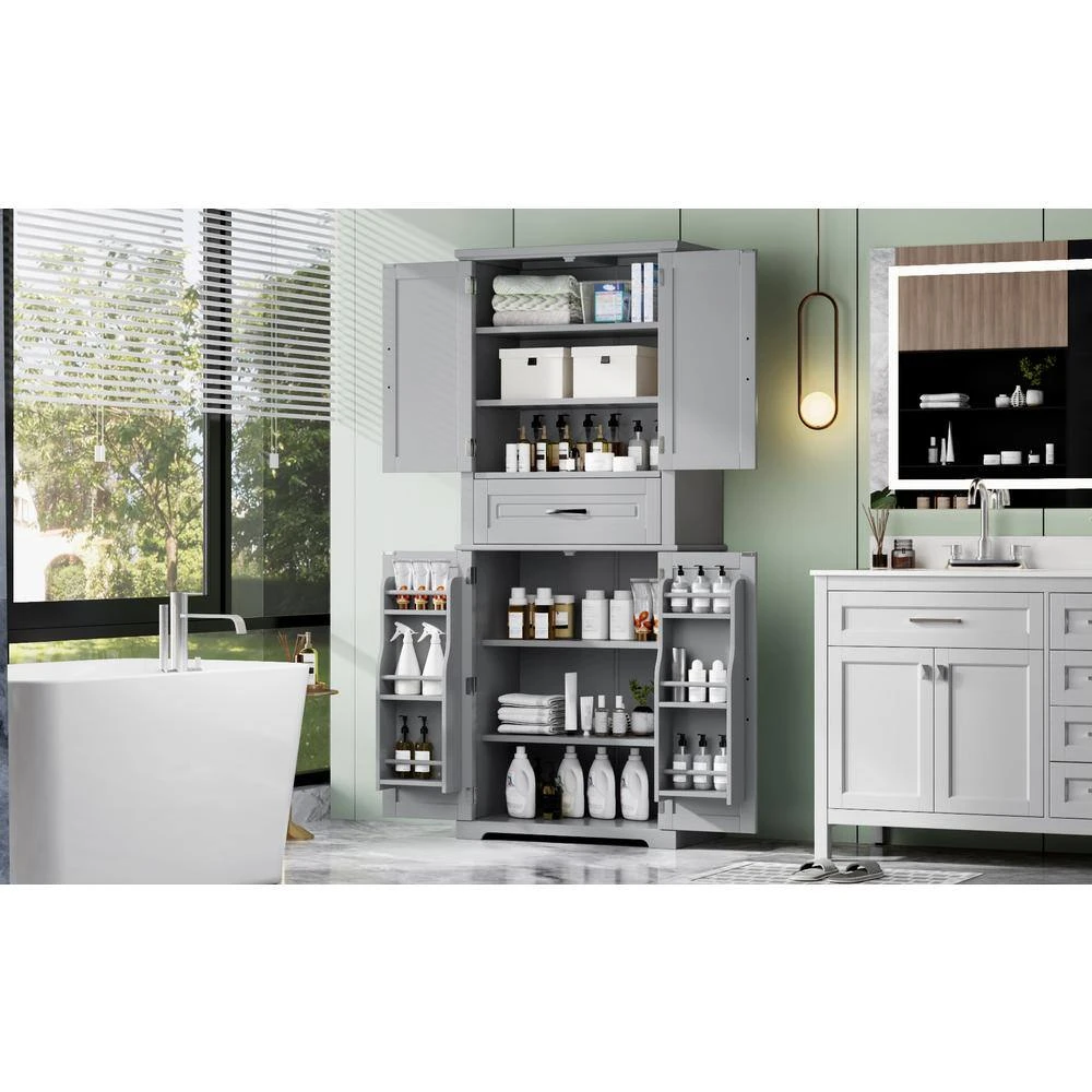 This storage cabinet is crafted from high-quality MDF boards with a painted finish, ensuring that the surface is water-proof, smooth, and easy to clean. The black metal bar handles provide a sleek touch and make it convenient to open or close the drawer and door. Inside the upper cabinet, the second shelf can be adjusted to 3 different heights, allowing for flexible storage of items in various sizes such as shampoo, towels, body lotion, tissues, and storage baskets, thus satisfying daily needs. For ample storage, the upper enclosed cabinet features 3 tiers perfect for decorations or everyday articles. Additionally, the middle section includes a large drawer with slide rails for smooth operation, while the lower cabinet offers a storage rack for even more space to organize necessities easily. Safety is prioritized with an included anti-tipping device, which can be securely screwed to the wall to prevent accidents. Assembly is required, but the process is made straightforward with pre-drilled holes in the MDF boards, along with an instruction manual and hardware pack provided to assist customers in completing the installation.
