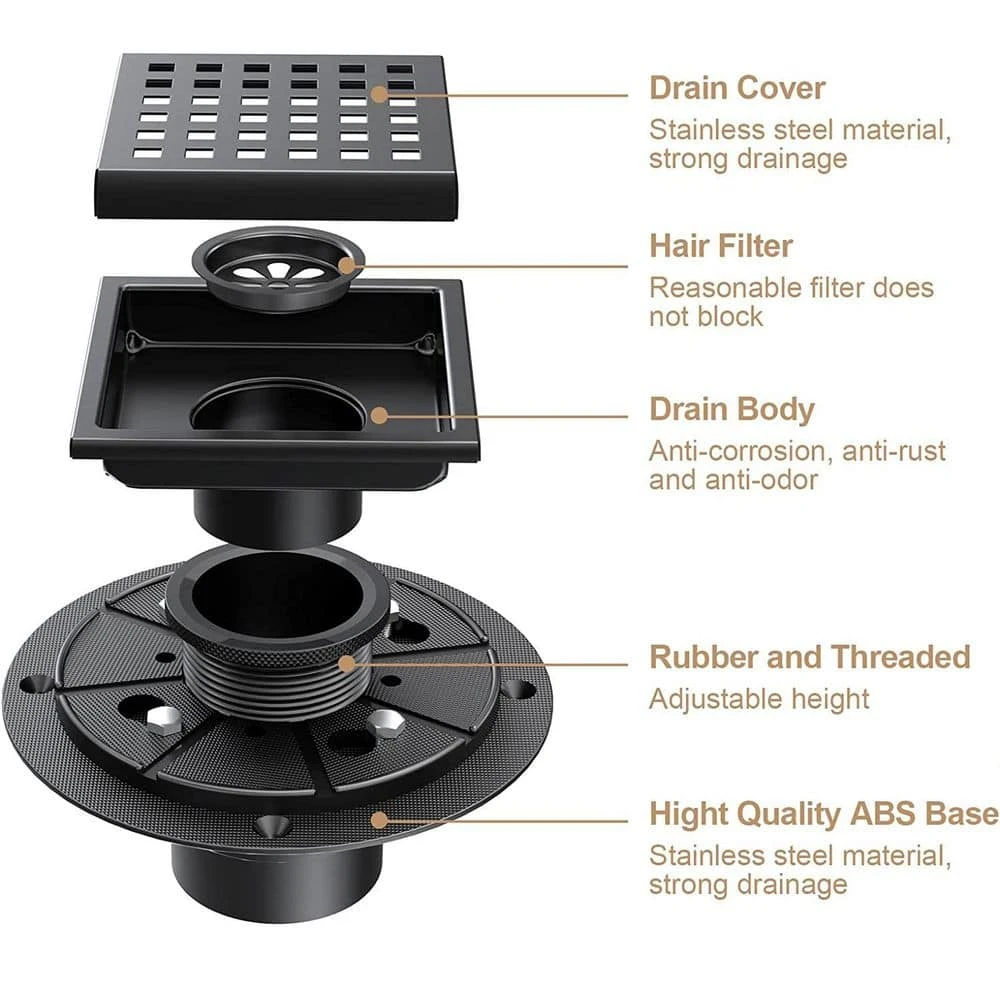 - Optimized water flow design: grid layout on the square drain cover accelerates water drainage, preventing pooling