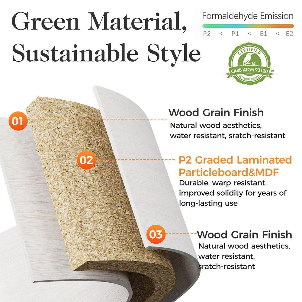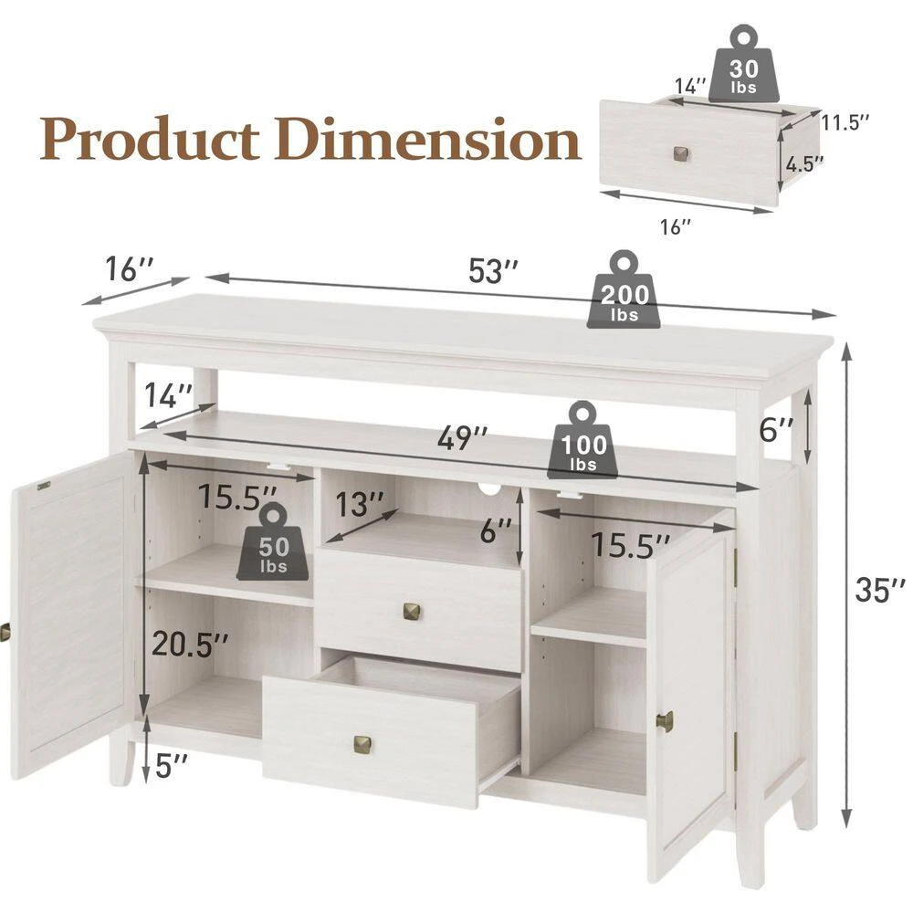 - Ample and customizable storage: features 2 smooth – slide drawers, 2 cabinets, and 5 adjustable shelves for versatile storage of items with different heights