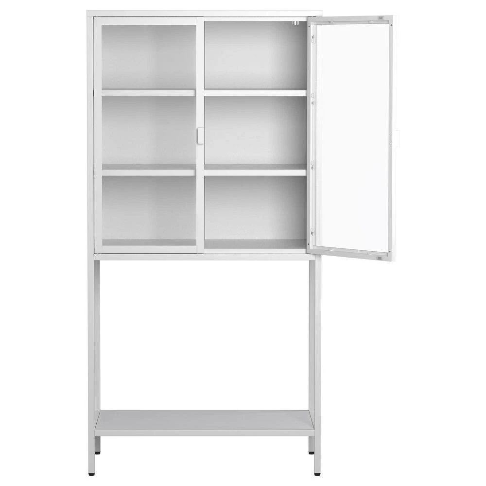 This 59 in. H Heavy Duty Metal Storage Cabinet is a great addition to homes and offices, combining function, durability, and style. Made of thickened cold-rolled steel, it’s strong, stable, and resistant to deformation, perfect for heavy loads. It has 2-adjustable shelves for flexible storage. The adjustable feet with anti-scratch caps keep it stable on uneven floors and make cleaning underneath easy. The doors have a magnetic closure for quiet operation and an elegant handle for a modern look. The tempered flat glass doors are shatter-resistant, adding elegance and visibility. For safety, there’s an anti-tipping device. This cabinet is highly versatile. It can be used in the kitchen for cookware, in the living room for decor, in the bedroom for clothes, in the office for documents, and in the children’s room for toys. It’s also eco-friendly, being free of formaldehyde. Its sleek design and smooth top, which can be used for display or storage, blend well with any decor.