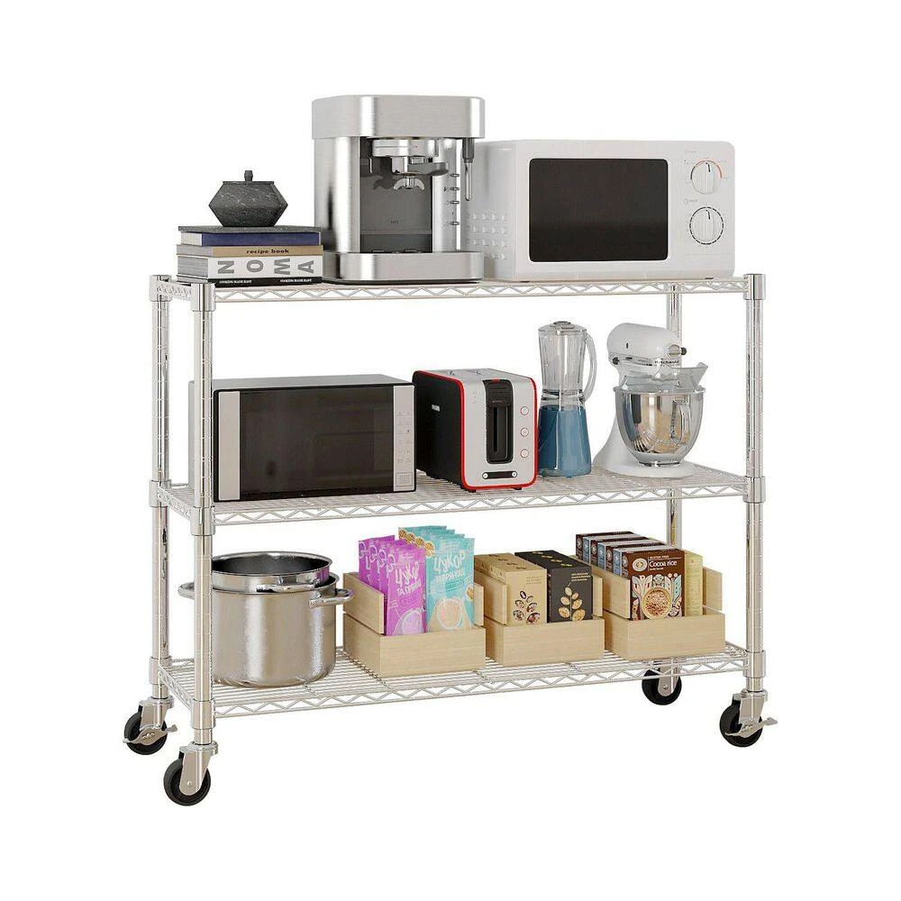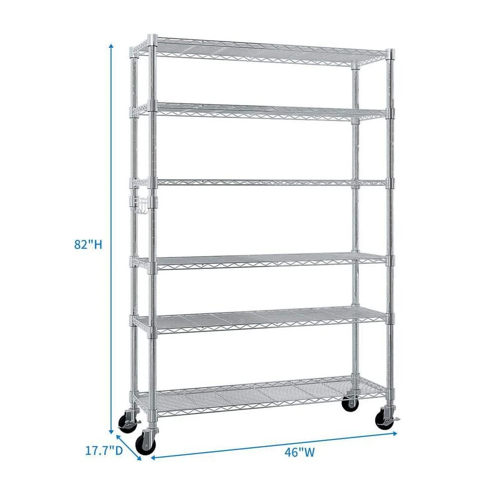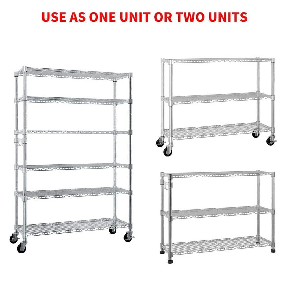 - Heavy-Duty Capacity: Reinforced steel build; 2100 lbs total (350 lbs per shelf without wheels)