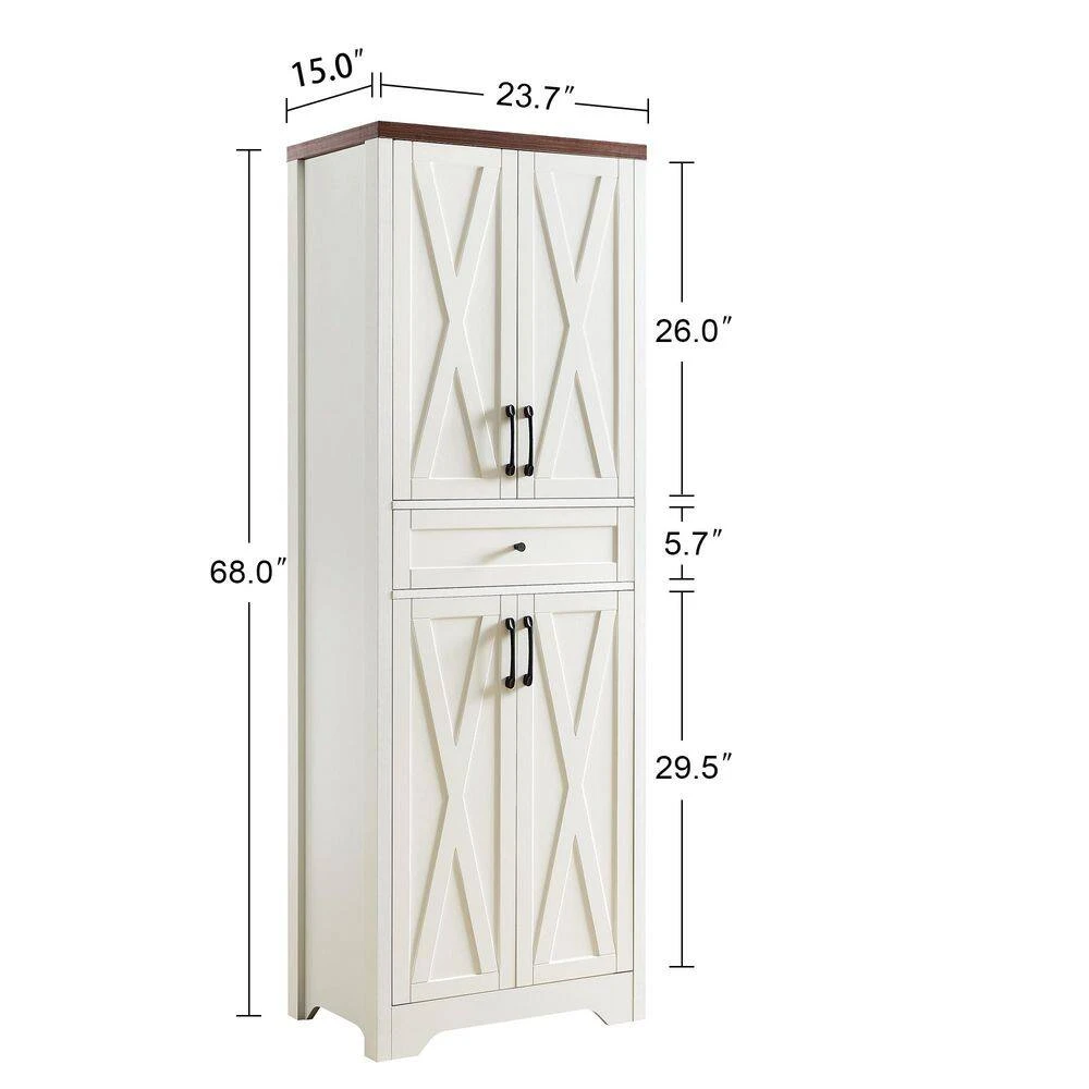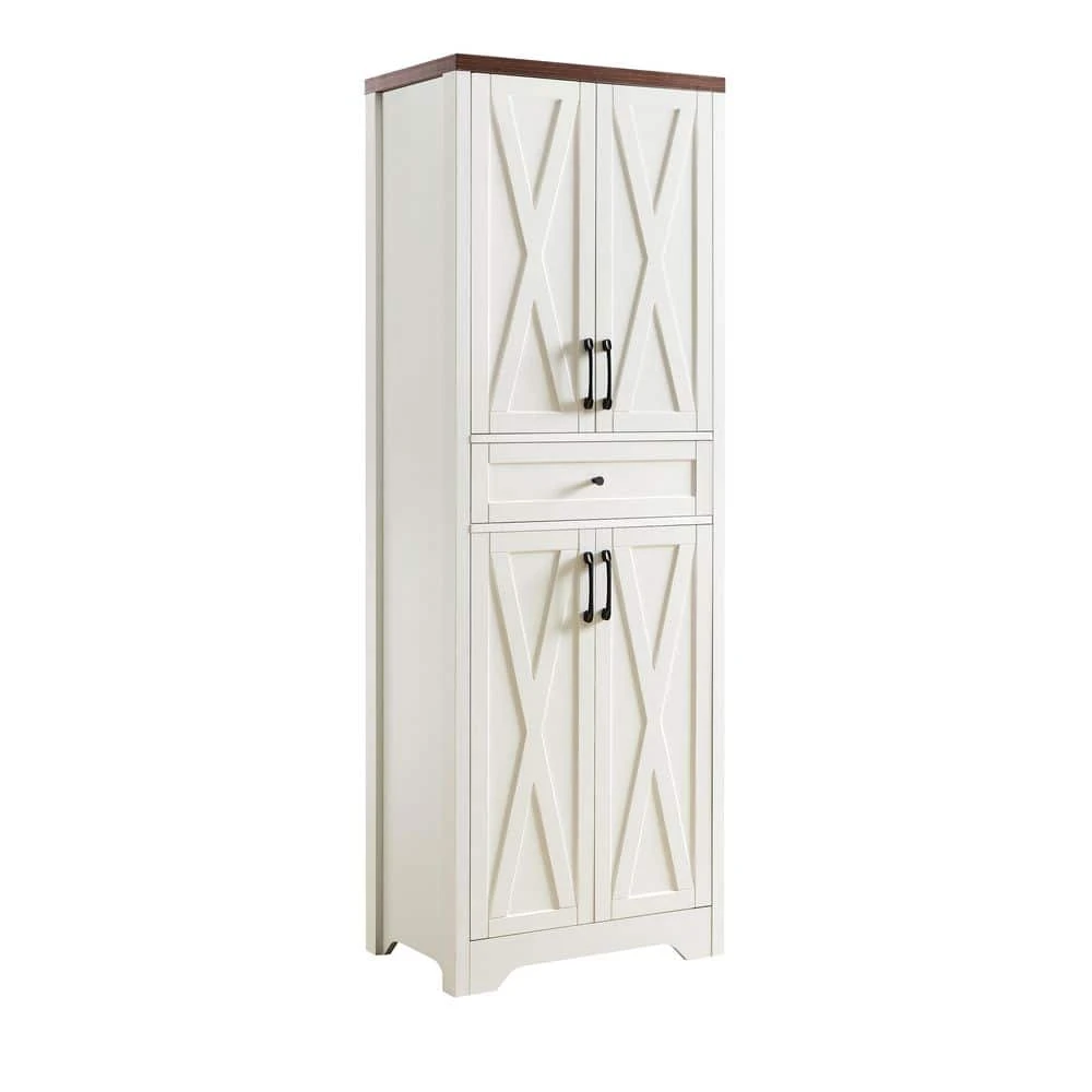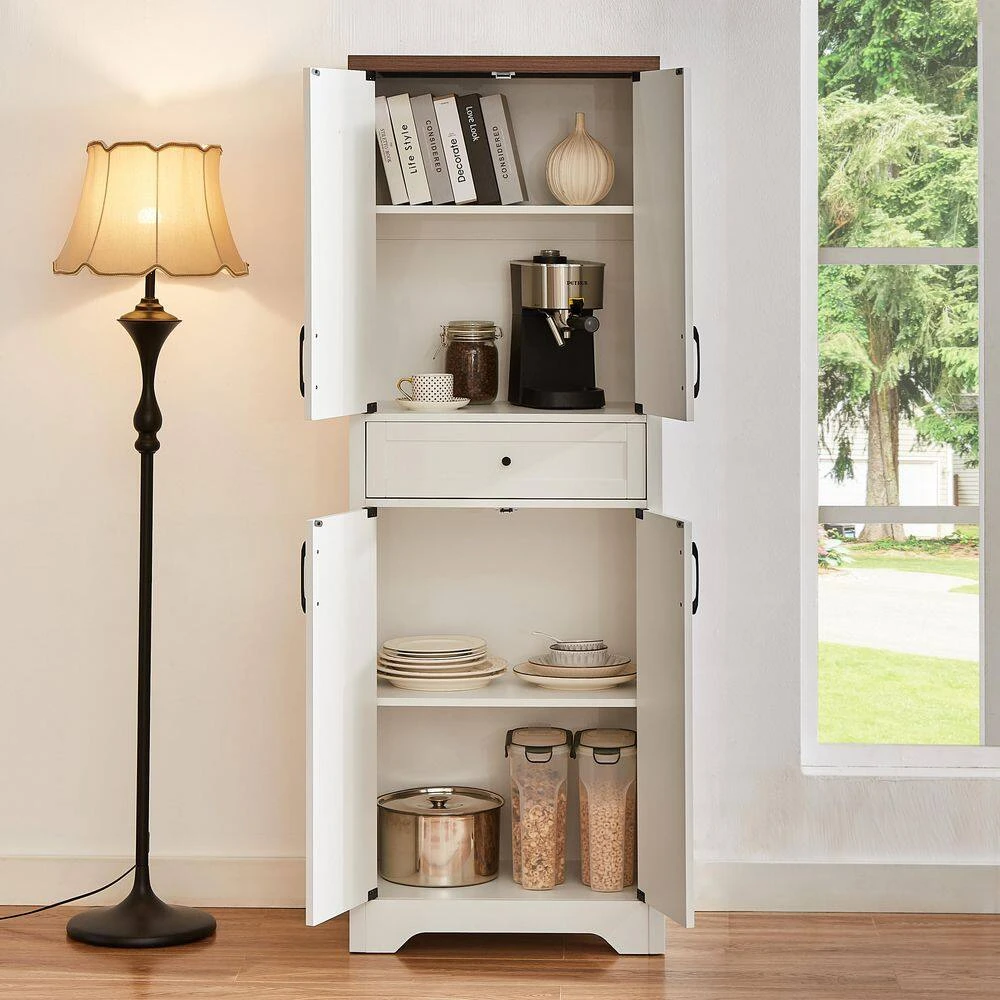 This tall pantry cabinet brings an understated luxury atmosphere to your living room, featuring smooth lines and a pure color that blends seamlessly with various decor styles. It offers ample storage options with 1 drawer and 4 doors, giving you plenty of space to organize daily items neatly.​The cabinet makes reasonable use of its internal space, allowing you to store and arrange things according to your needs-helping you create an exquisite living style that reflects your personal taste.​To ensure long-term stability during use, the cabinet’s main body is made of durable particle board, providing reliable sturdiness for daily storage needs.