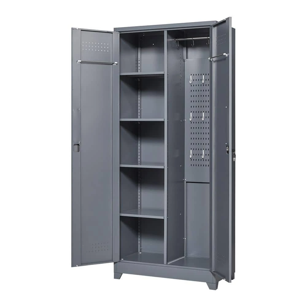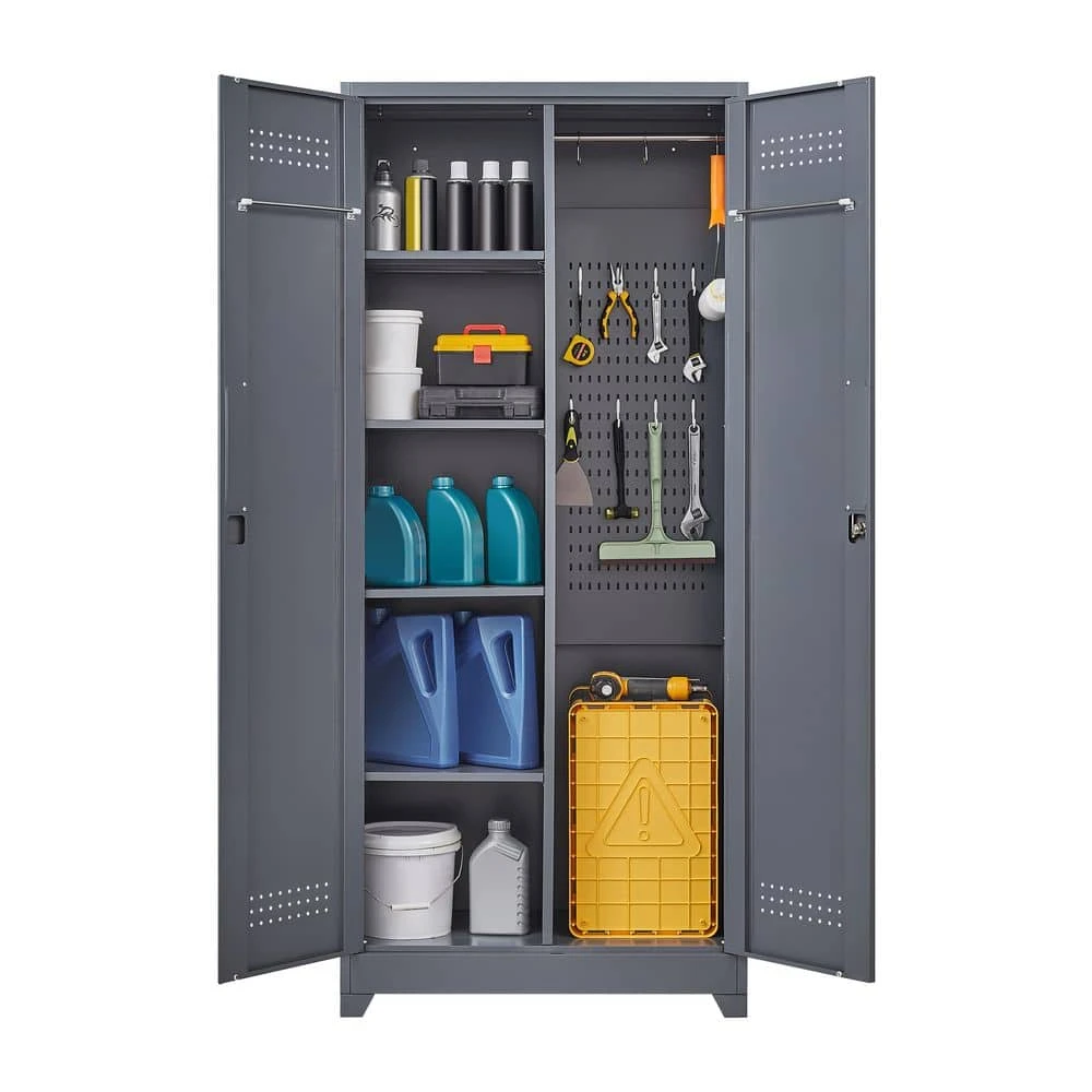 - Versatile Storage Setup: Equipped with hanging rods (for tools, clothes, towels) and shelves, suitable as garage cleaning tool storage, basement cabinet, or office storage.