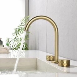 8 In. Widespread Bathroom Sink Faucet Lavatory Faucet 3 Hole 360-Degree Swivel Spout In Brushed Gold
