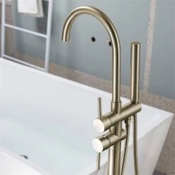 Single-Handle Free Standing Claw Foot Freestanding Tub Faucet With Handheld Shower In. Brushed Gold