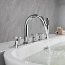 Single-Handle Waterfall Tub Faucet Wall Mount Roman Tub Filler With Hand Shower In Polished Chrome