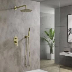 2-Spray Wall Mounted Fixed And Handheld Shower Head Waterfall Rain Shower System In Brushed Gold