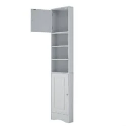 6.70 In. W X 35.00 In. D X 28.70 In. H Bathroom Storage Wall Cabinet With Mirror Towels Bar In White