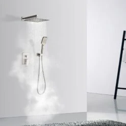 Single-Handle 2-Spray Patterns Rainfall Rectangle Dual Shower Head In Brushed Gold (Valve Included)