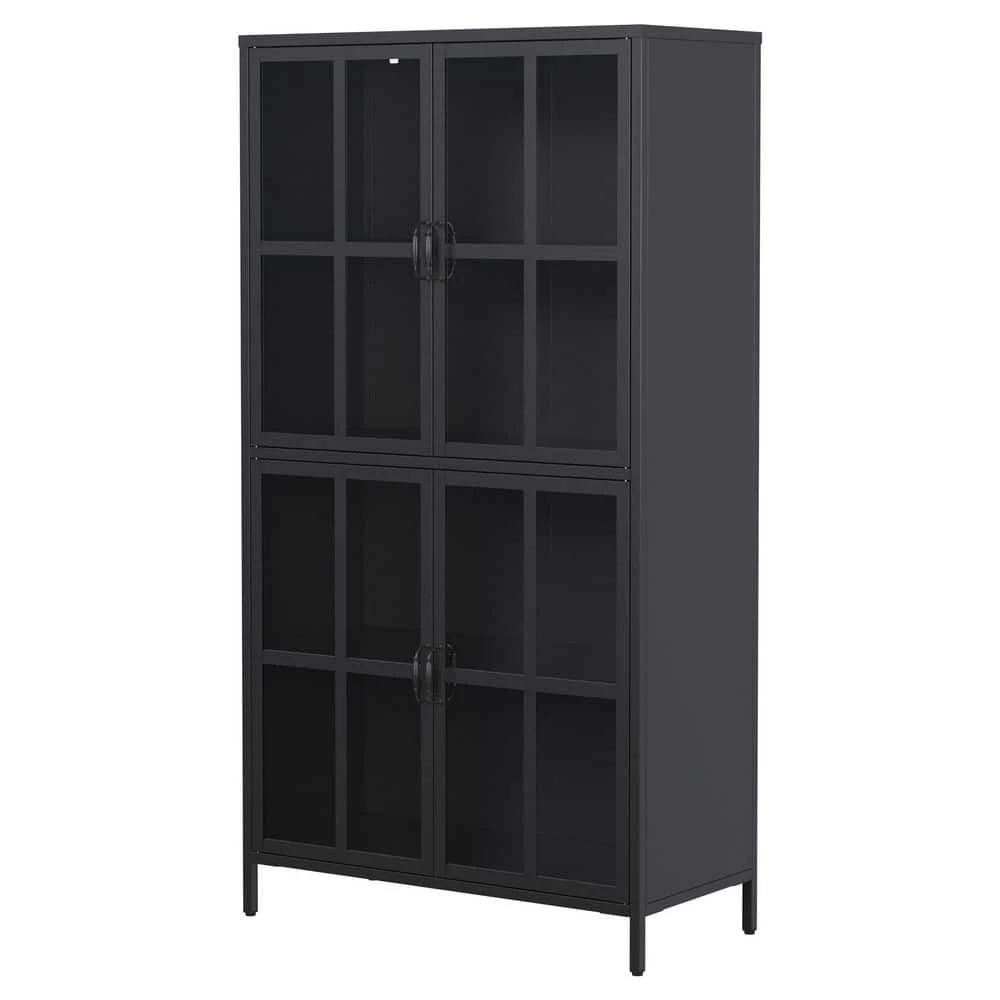 Our Premium Black Metal Storage Cabinet is designed to transform your home or office space with its exceptional durability and aesthetic appeal. Made from high – quality steel and tempered glass, it offers outstanding strength and stability. It features spacious storage with large upper and lower compartments and adjustable shelves to fit items of various heights, maximizing storage. Safety is a priority with an anti – tipping device to protect kids and pets. The magnetic silent closure ensures a secure and quiet operation, keeping your space noise – free. Adjustable feet allow for easy cleaning underneath and provide stability on uneven surfaces. Its versatile design suits the living room, dining room, bedroom, or kitchen, adding elegance with sleek black finish and Roman handles. Assembly is a breeze as it comes with an instruction manual, installation gloves, a screwdriver, and numbered parts, and you can scan the QR code in the manual for an installation video to save time. The top can support up to 100 lbs and each adjustable and bottom shelf up to 66 lbs, making it a robust storage solution for all your household, office, or kitchen needs.