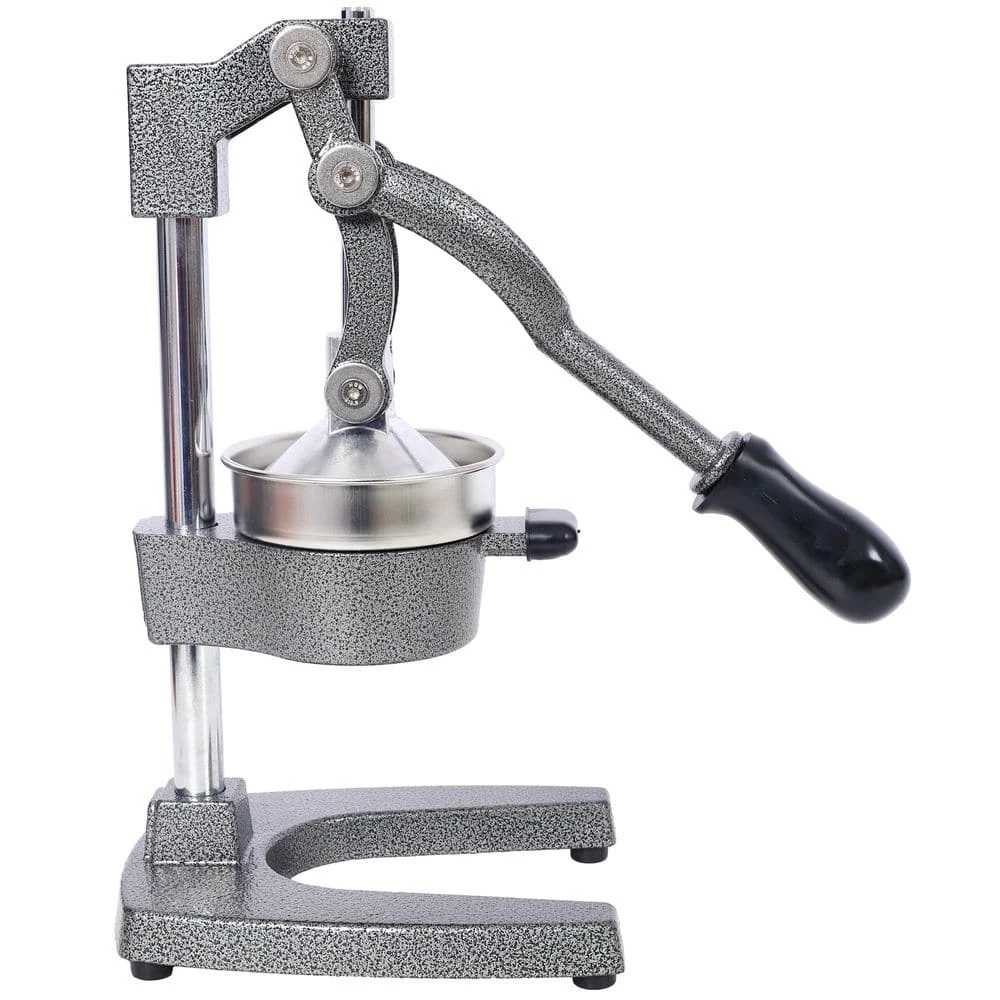 This commercial manual citrus juicer combines professional quality and ease of use, crafted from heavy-duty cast iron for continuous, high-performance juicing. Its robust lever design enables effortless extraction of more juice with minimal effort, ideal for daily use in commercial or home settings. Squeezing fresh juice is quick and simple: just halve citrus fruits or pomegranates, place them face down in the bowl, and pull the lever to enjoy healthy, fresh juice in seconds. Cleaning is hassle-free, as removable fruit-contact parts are dishwasher-safe, while the sturdy body can be easily wiped down for reuse. Unlike electric models, this hand press ensures pure, sweet juice by avoiding bitter rind extraction, effortlessly squeezing every drop from oranges, grapefruits, lemons, limes, and pomegranates for consistently flavorful results.