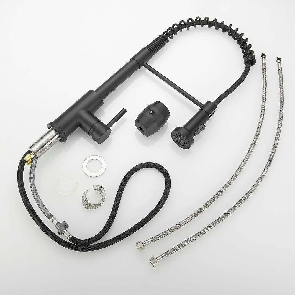 The Commercial Black Kitchen Faucet with Pull Out Sprayer features a lead-free brass construction for enhanced leak-tightness, with a ceramic cartridge that has undergone rigorous testing to ensure durability. The faucet’s matte black finish resists corrosion, fingerprints, and water spots, making it easy to clean with a cloth. It boasts a multifunctional outlet that allows for both stream and spray settings, controlled easily with a single handle that mixes hot and cold water to provide stable water pressure. The high-arc, 360-degree swivel design with a pull-down sprayer offers easy use, and the faucet can be installed in either a 1-hole or 3-hole configuration (with an extra deck plate purchased separately). DIY installation is quick and easy, taking less than 25 minutes and saving you money and time without the need for a plumber.