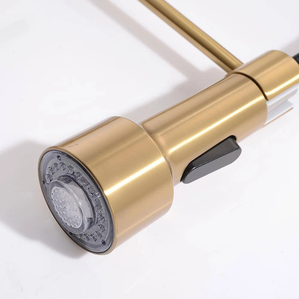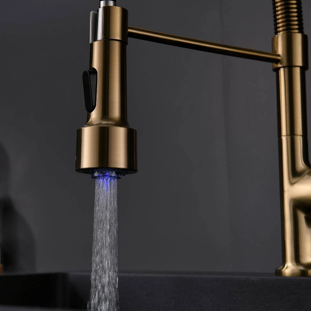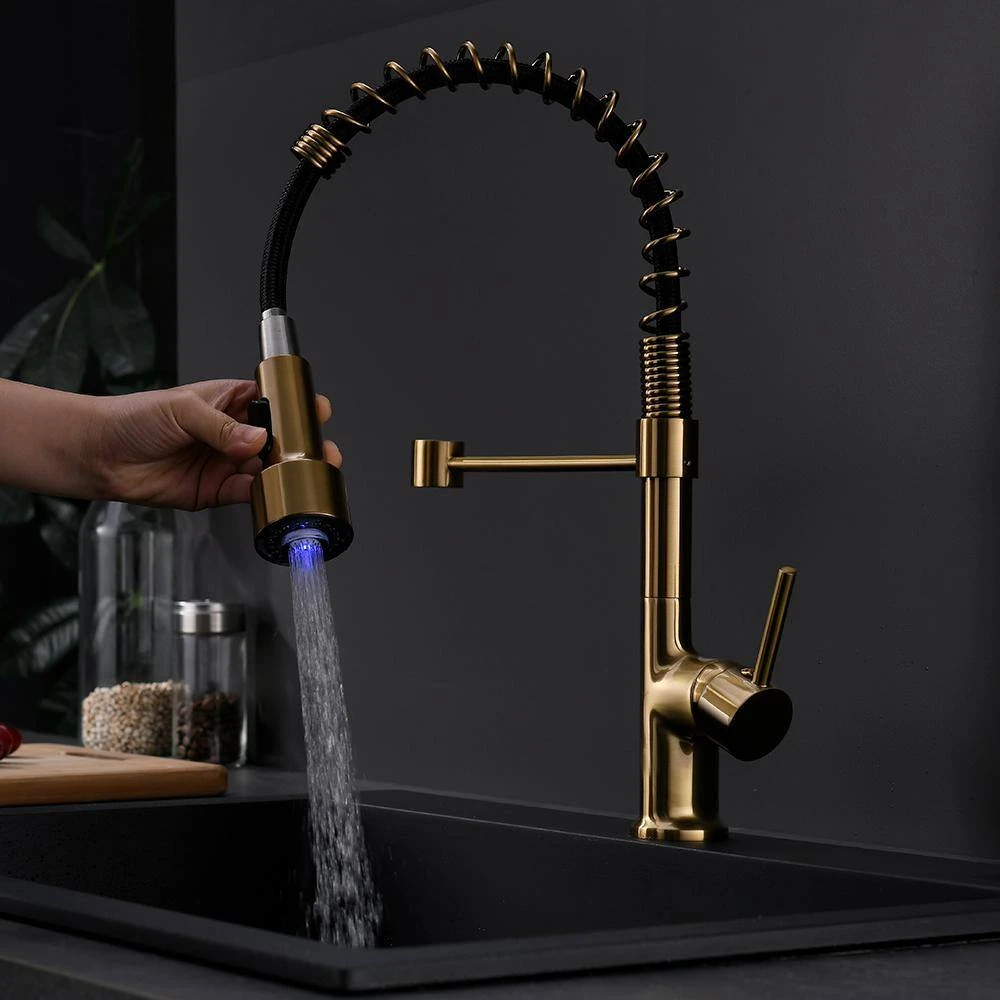 The Commercial LED Kitchen Faucet, featuring a pull-down sprayer and single handle single lever control, revolutionizes your kitchen experience with its convenient dual-function settings and 360° rotation. This faucet lets you seamlessly switch between a gentle stream and a powerful spray, making it a breeze to wash your hands, dishes, and other items. The single handle attachment offers easy adjustment of water pressure and temperature, ensuring that you always have the perfect flow and warmth for your tasks. Additionally, the high-arch spout design, reminiscent of a gooseneck, provides ample space and reach, making it perfect for a variety of sink activities in your kitchen, laundry room, farmhouse, restaurant, camper, or trailer.