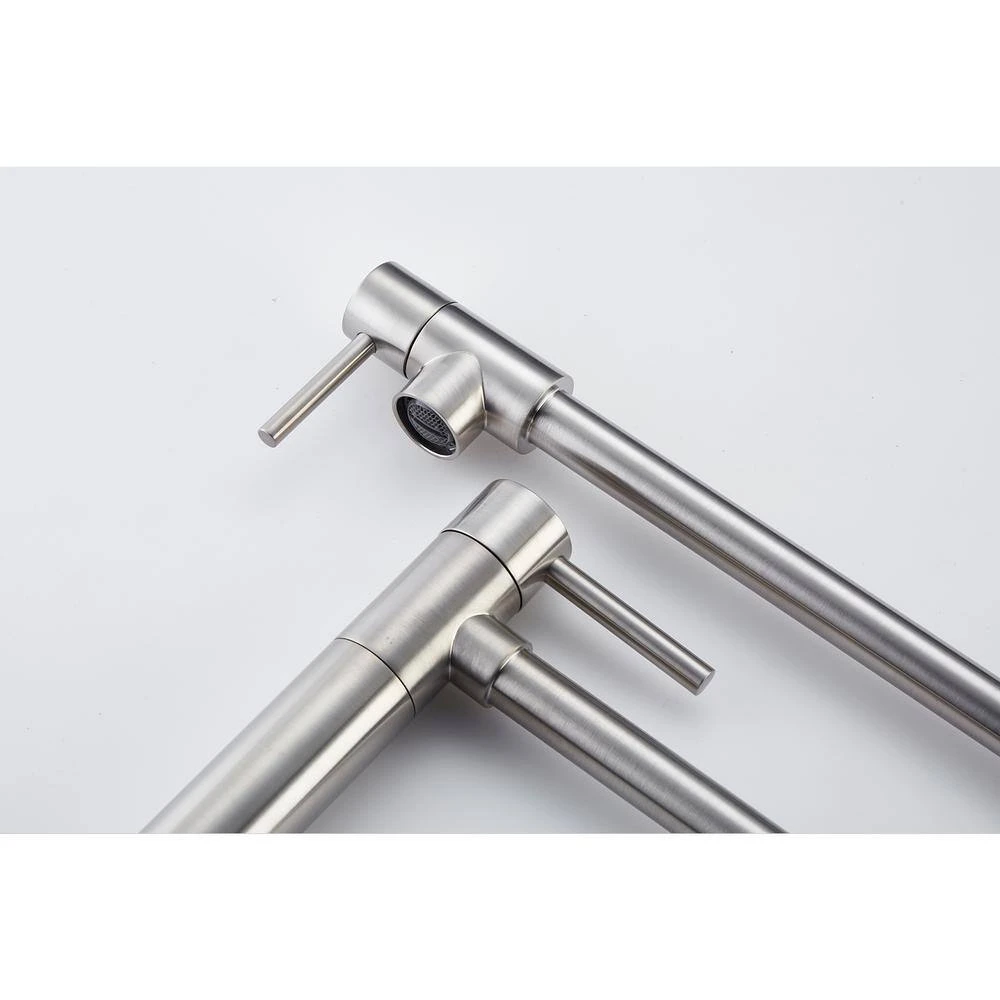 Our pot filler faucet offers both elegance and functionality with its free-swivel arm design, allowing easy pot filling and cleaning. The double handles ensure precise water control and prevent dripping, while the quality aerator ensures a quiet, splash-free flow. Crafted from high-quality materials, its corrosion-resistant surface maintains durability and cleanliness, enhancing your kitchen’s aesthetic and efficiency.