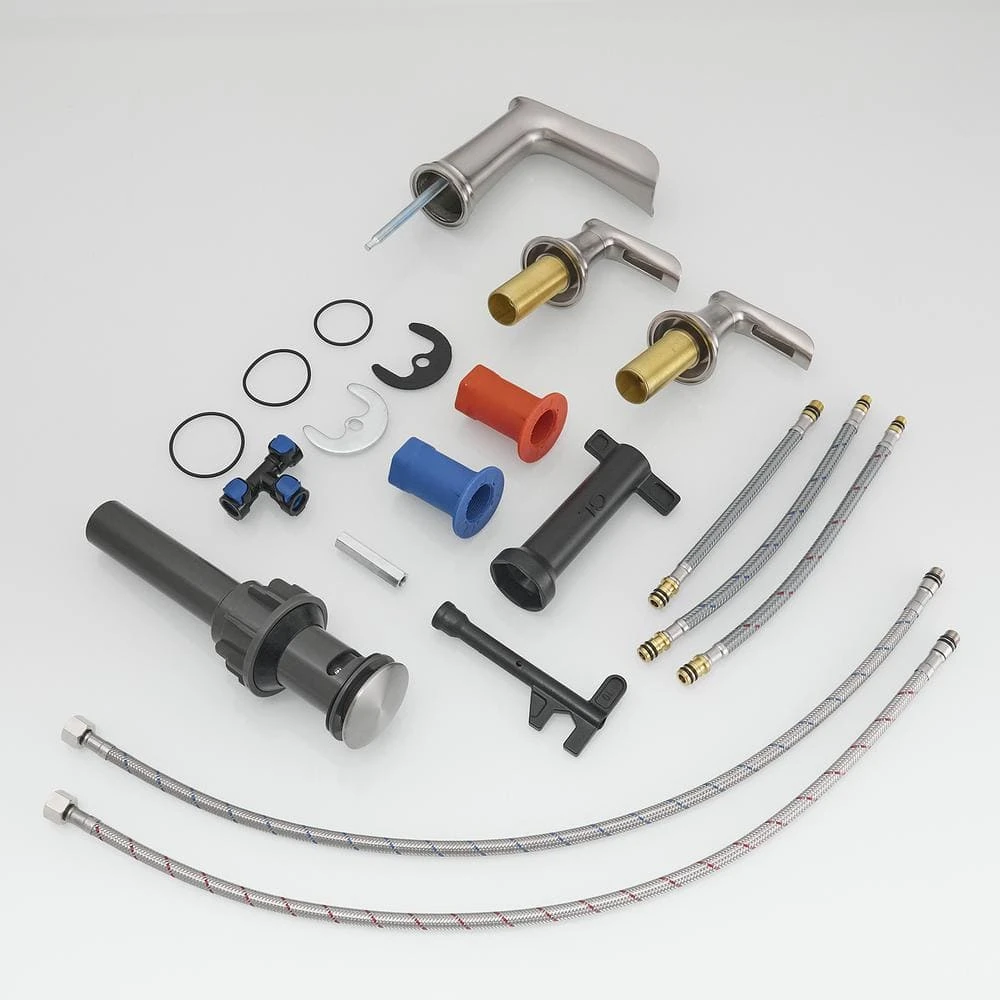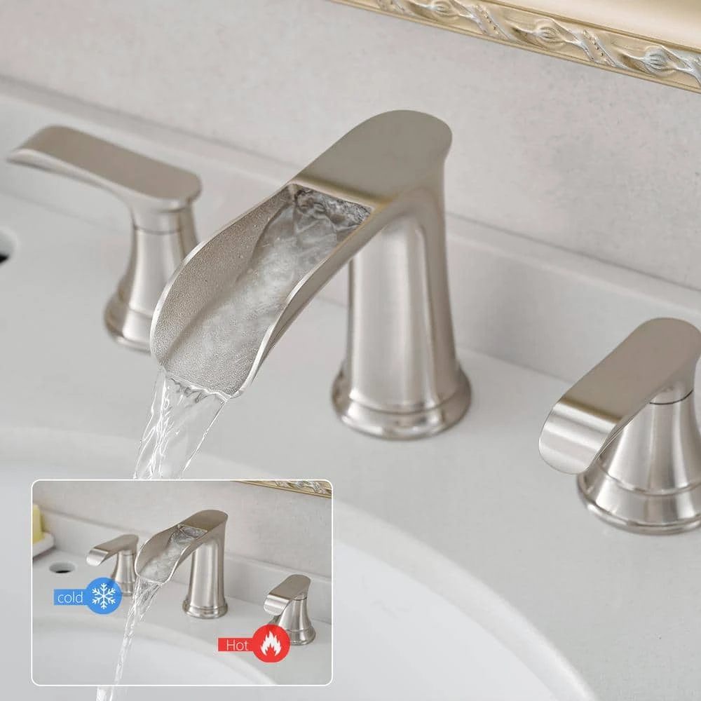 Experience elegance and functionality with our 3-hole, 8 in. widespread bathroom sink faucet, finished in brushed nickel for a sophisticated look that resists both corrosion and scratches. Crafted from solid brass, the faucet features a ceramic cartridge to ensure drip-free performance and long-lasting durability. The 2-handle metal lever design allows for precise control over water volume and temperature, making it easy to customize your bathroom experience. Our faucet comes with a matching color universal overflow pop-up drain stopper for a cohesive look. With DIY-friendly installation, requiring just 3 mounting holes and accommodating countertops with centers ranging from 8 to 16 in., this faucet is the perfect addition to your modern bathroom.