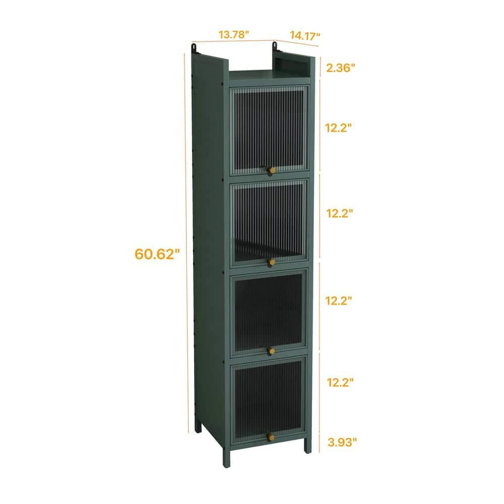 Our sideboard has great features. It has a Contemporary & Concise Style with simple lines and a minimal shape. The high – end matte Dark green finish suits any decor.It’s made of Iron + tempered glass with careful craftsmanship. Connections are tight, so it’s stable and durable, resisting rust, etc. The fluted glass gives good light but is non – see – through, adding a modern touch for high – grade decor.Protective feet prevent floor scratches, improving function and style. Four closed cabinets store small items, and the spacious upper counter can hold essentials or display decor.Assembly is easy. With a simple design, all hardware and detailed instructions are included.