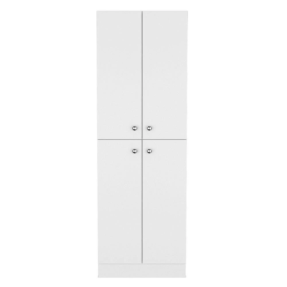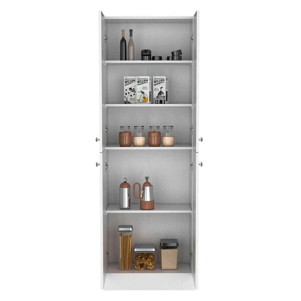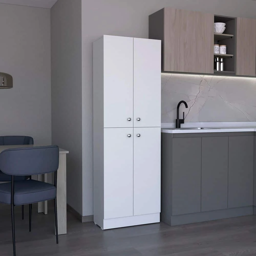 This Kitchen Pantry Storage Cabinet comes with a host of remarkable Product Features. It features Adjustable Shelves, with 3 adjustable shelves and 1 fixed shelf. This setup ensures that regardless of the height of your items, you’ll always have sufficient space to store them. In terms of Size and quality materials, it’s constructed from high – quality laminated particle board. The overall dimensions are 71.1 in. High x 23.6 in. Wide x 11.8 in. Deep, providing a substantial amount of storage space. The cabinet has a Modern Elegant design. It consists of Tw2- Double Door Cabinets, which are perfect for concealing and storing larger items like Pots and Pans. Assembly is a breeze as it offers Easy to Assemble features. With clear instructions guiding you through the assembly of each labeled part, all you require is a screwdriver to lock the cam and bolt assembly system. Moreover, it has MULTIPLE USES. This product can function as a Pantry in your kitchen, a Tool Cabinet in your garage, a Storage Cabinet in your office, or even as a Bathroom Cabinet. It provides various storage solutions and meets your needs with its functionality, helping you achieve a neat and clean space.