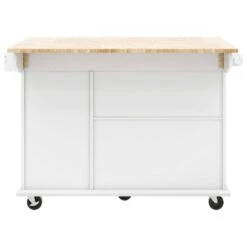 White Kitchen Cart With Rubber Wood Drop-Leaf Countertop, 3 Drawers, Cabinet Storage And 5 Wheels