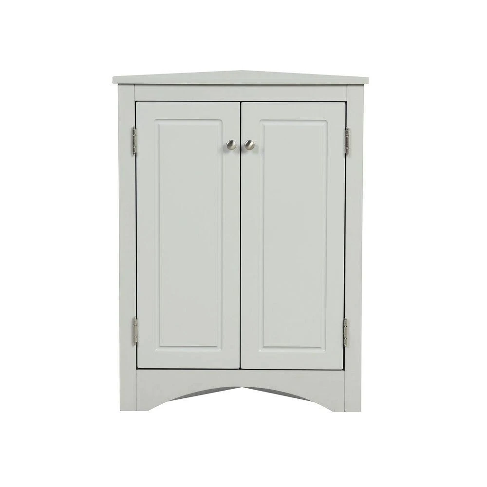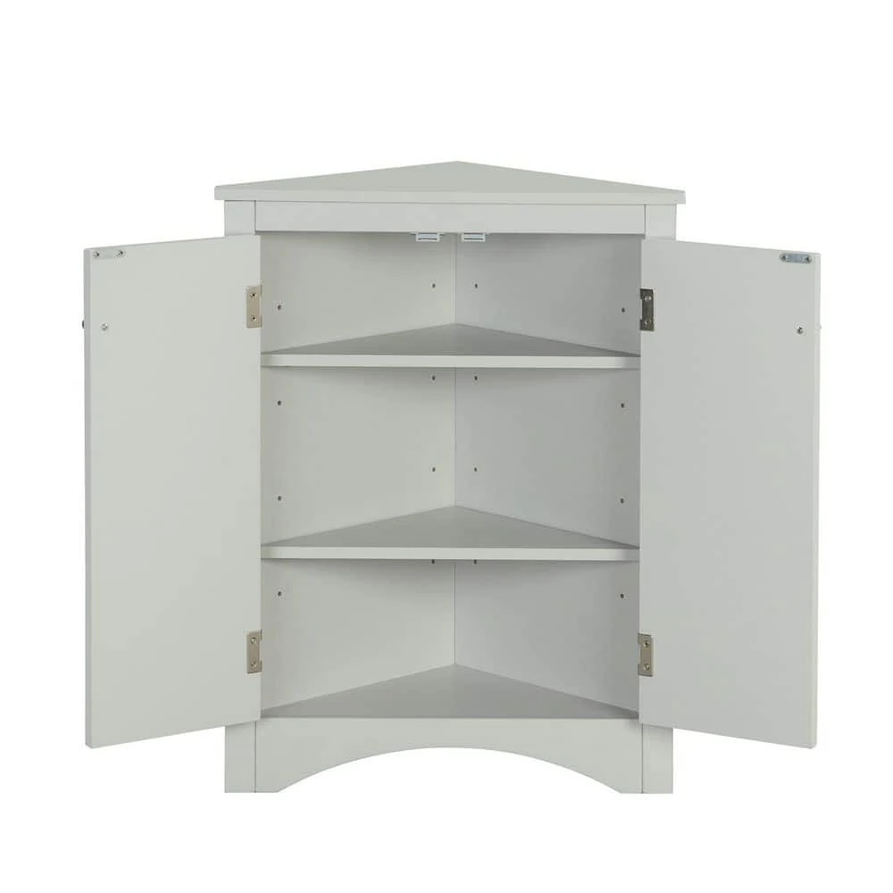 This corner storage cabinet offers affordable functionality and style, featuring a triangular design that maximizes unused corner or wall space while adding an elegant touch to any room. Crafted from high-quality waterproof MDF board (more durable than standard particleboard), it ensures long-lasting stability and easy maintenance, with a sleek finish that stays looking new. The cabinet includes adjustable interior shelves, allowing customizable storage for towels, toiletries, spices, snacks, or shoes in bathrooms, laundries, pantries, or living areas. Its closed storage with doors keeps items dry and clutter-free, while the brushed nickel knobs provide easy access. Available in 3 colors to suit different decor styles, the cabinet supports versatile use in compact spaces. Assembly is straightforward with the included illustrated manual and hardware pack, making it a practical and stylish solution for organizing essentials while enhancing home aesthetics.