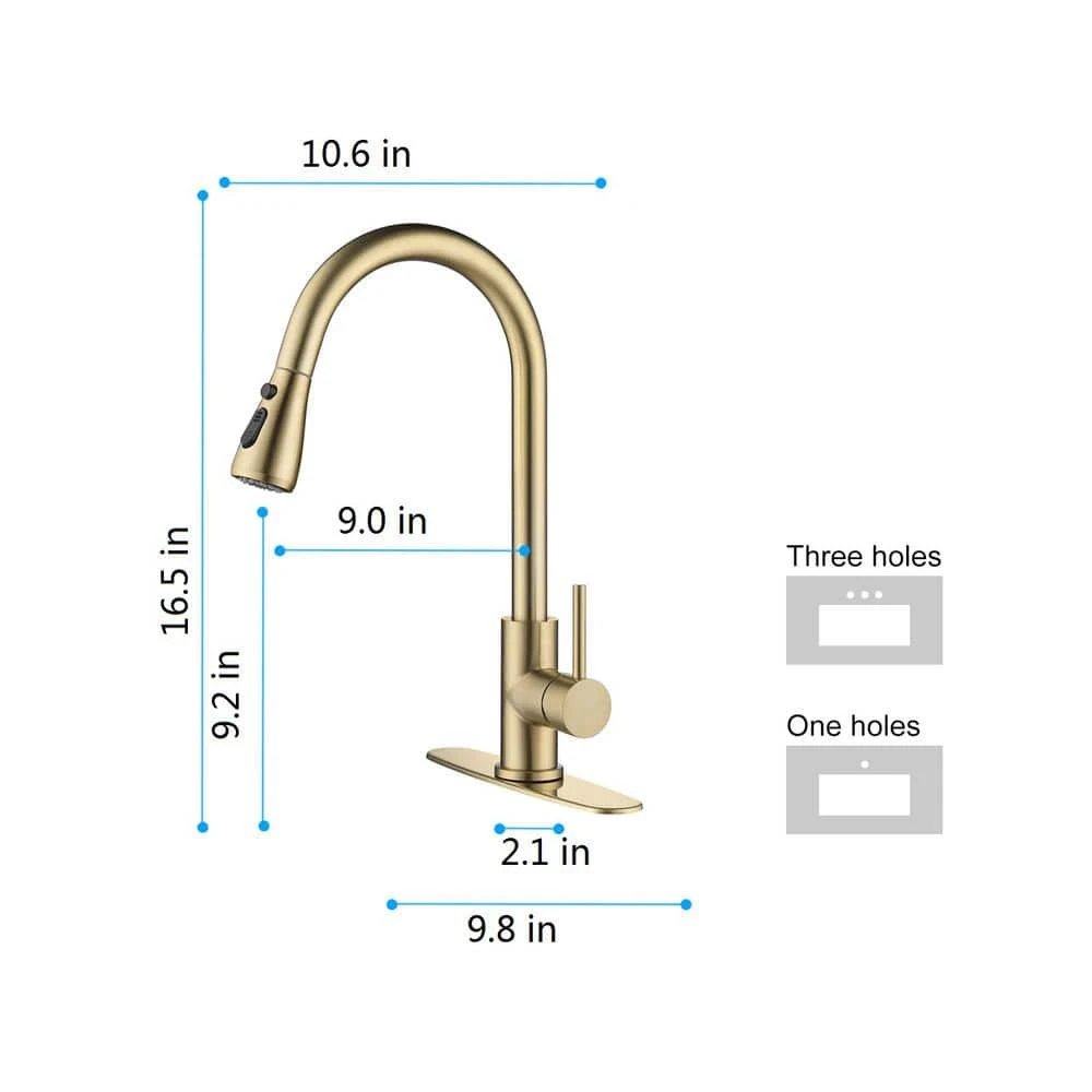 Kitchen Faucet With Pull Out Spraye In Brushed Gold