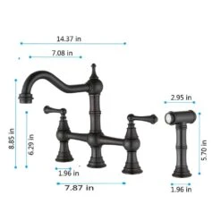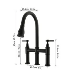 Double Handle Pull Out Sprayer Bridge Kitchen Faucet In Matte Black