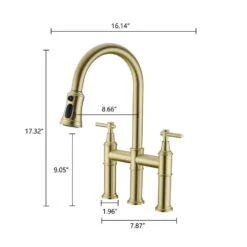 Single Handle Bridge Kitchen Faucet With Pull-Down Sprayhead In Spot In Matte Gold