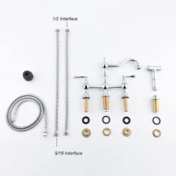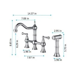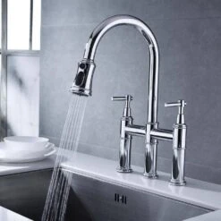 Single Handle Bridge Kitchen Faucet With Pull-Down Sprayhead In Spot In Chrome