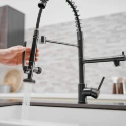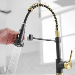 The Single-Handle Pull Down Sprayer Kitchen Faucet With 2 Spout?with Lock, In Matte Black And Gold