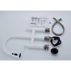 Single Handle Bridge Kitchen Faucet With Pull-Down Sprayhead In Spot In White