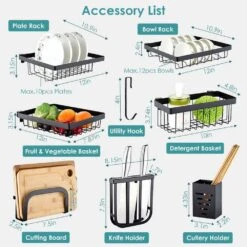 2-Tier Kitchen Dish Drying Rack: 33.7in Stainless Steel, Over-the-Sink Plus Utensil Organizer