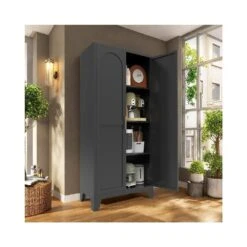 61 In 2 Shapely Doors Cabinet, Metal Storage Cabinet With Doors And Adjustable Shelves In Black