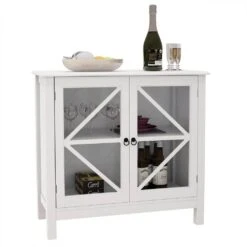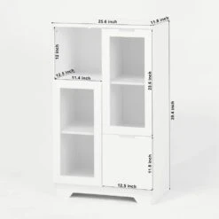 MDF Painted Cabinet With Glass Doors And Drawer, Open Storage Space,Bedroom, Living Room In Green