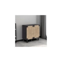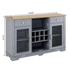 Modern Farmhouse Buffet Cabinet: 2-Drawers, Glass Doors, Wine Rack-Light Blue/Oak, 56.46 In. W