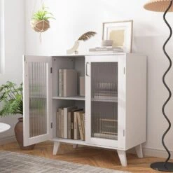 Modern Kitchen Buffet Storage Cabinet Cupboard White Gloss With Metal Legs For Living Room Kitchen