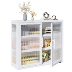 Retro Haze Double-Glass Door Cabinet With Removable Shelves-Versatile White Storage Solution